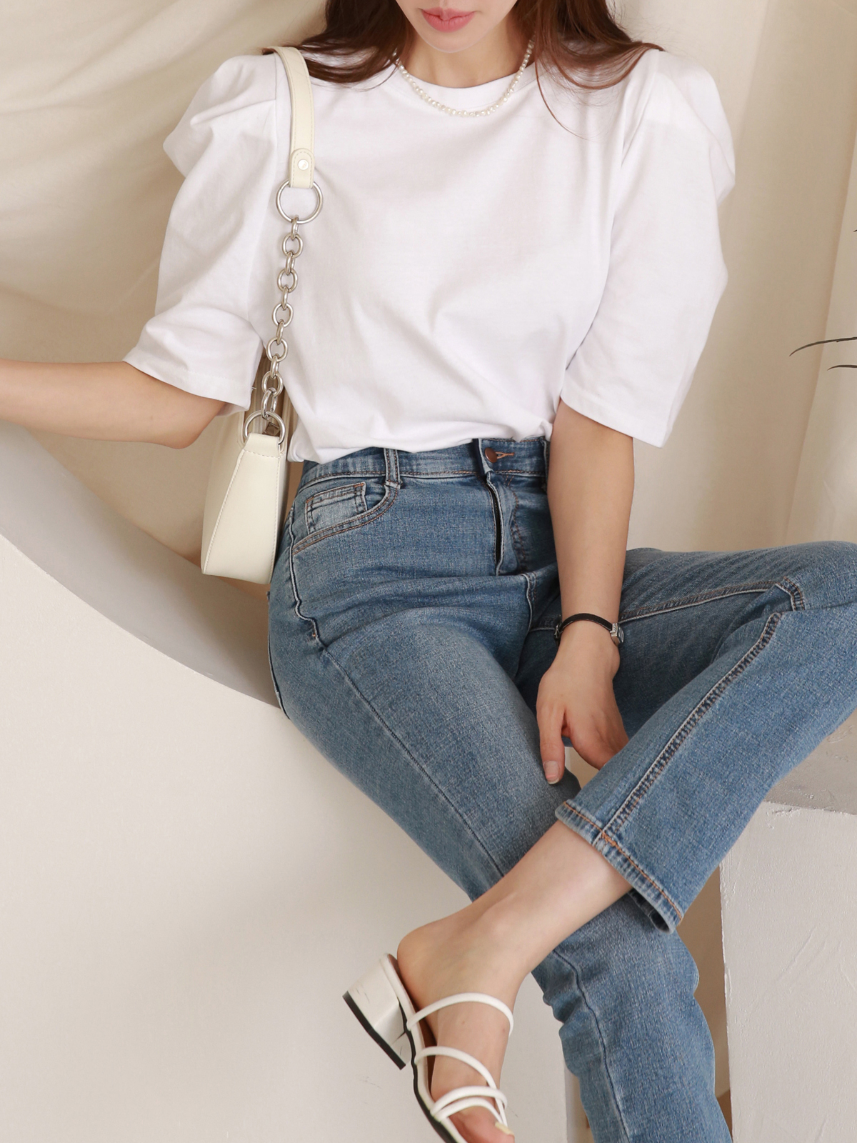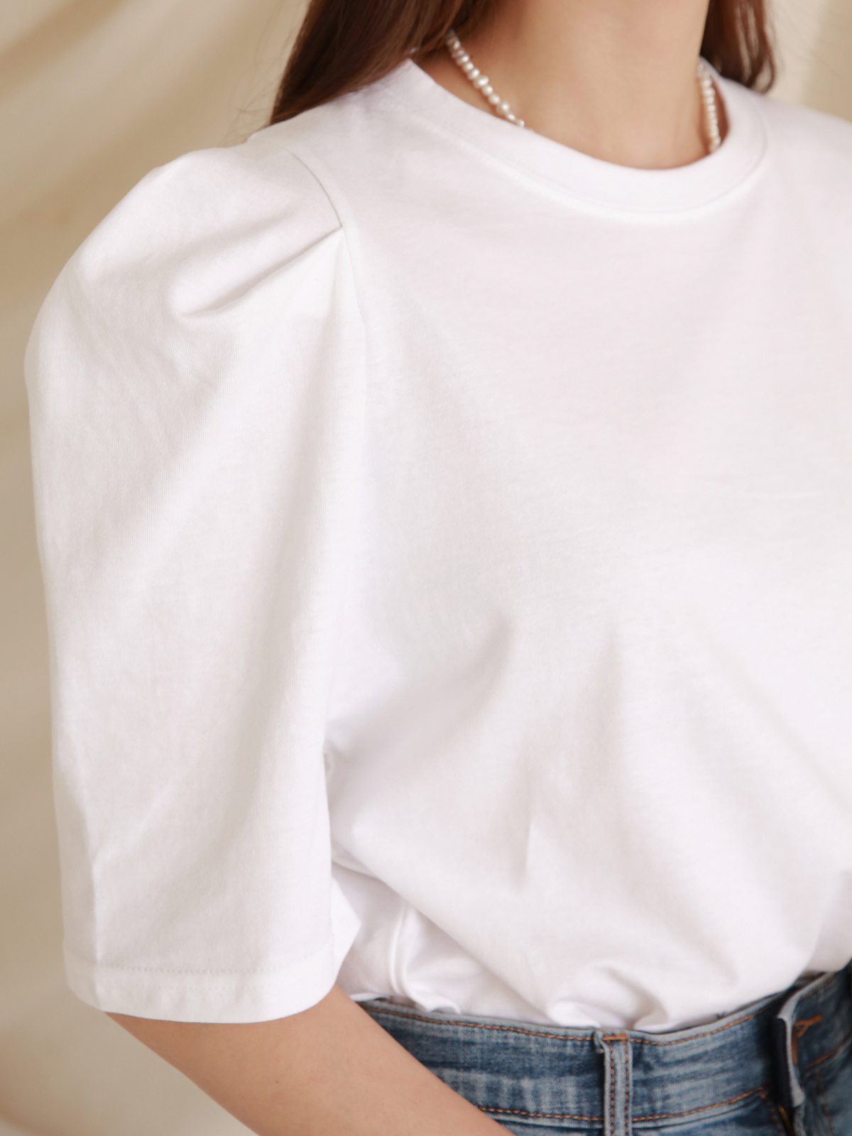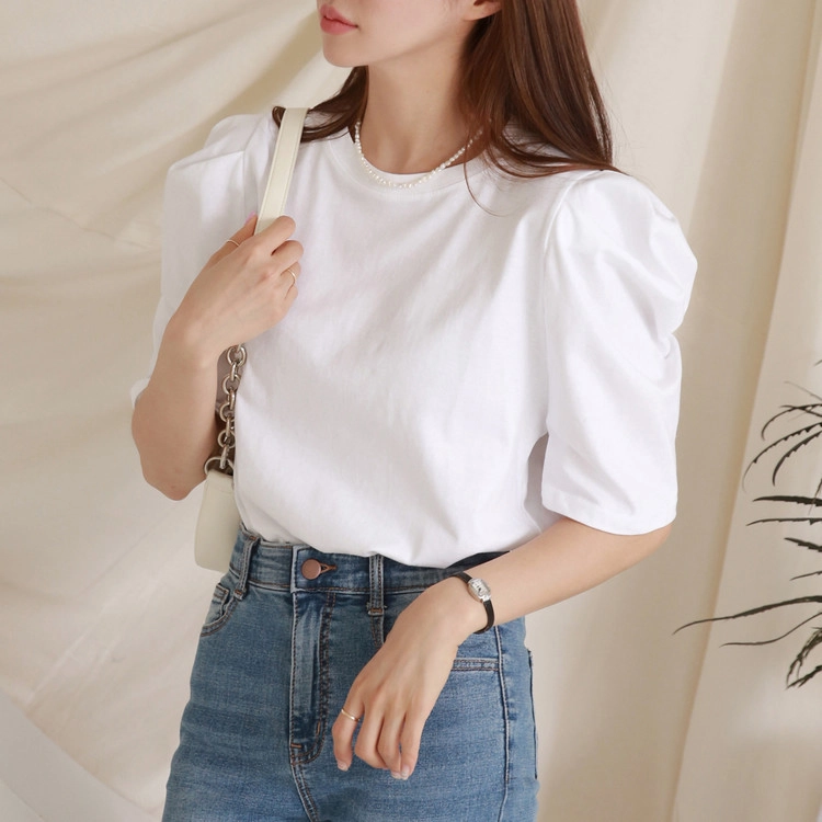 볼륨 소매 티셔츠와 브이넥 원피스 조합이 완벽해요 💫