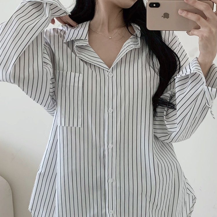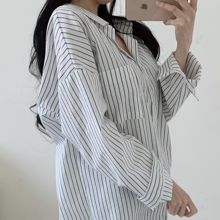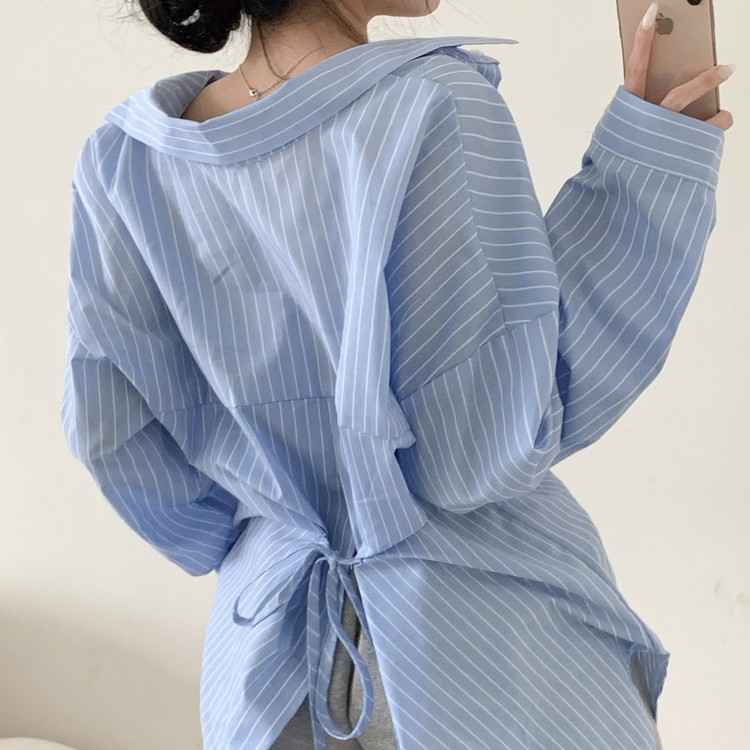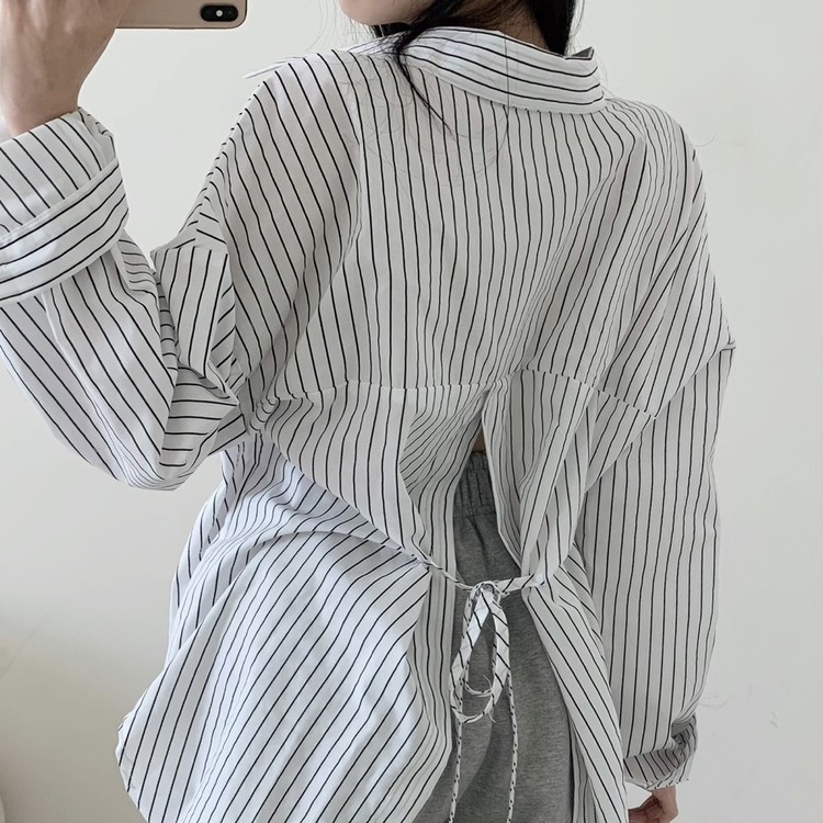 리본 스트랩 디테일이 포인트인 셔츠로,