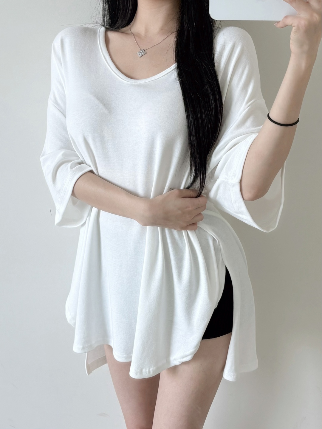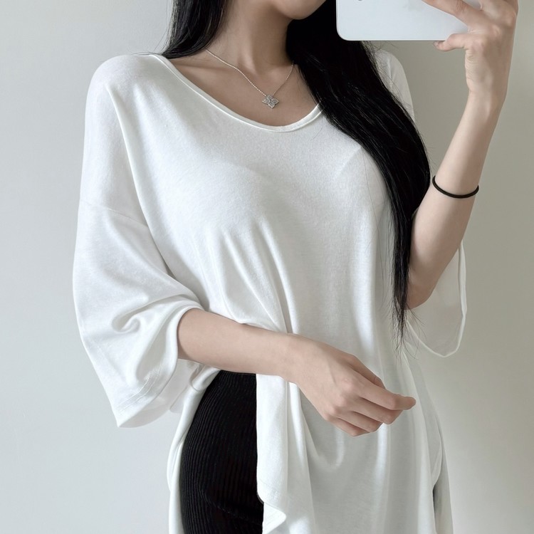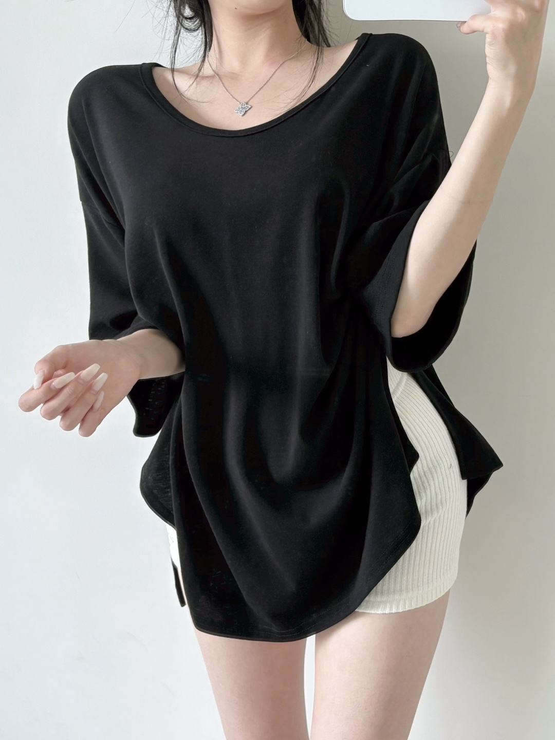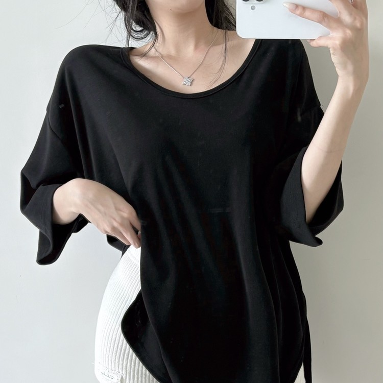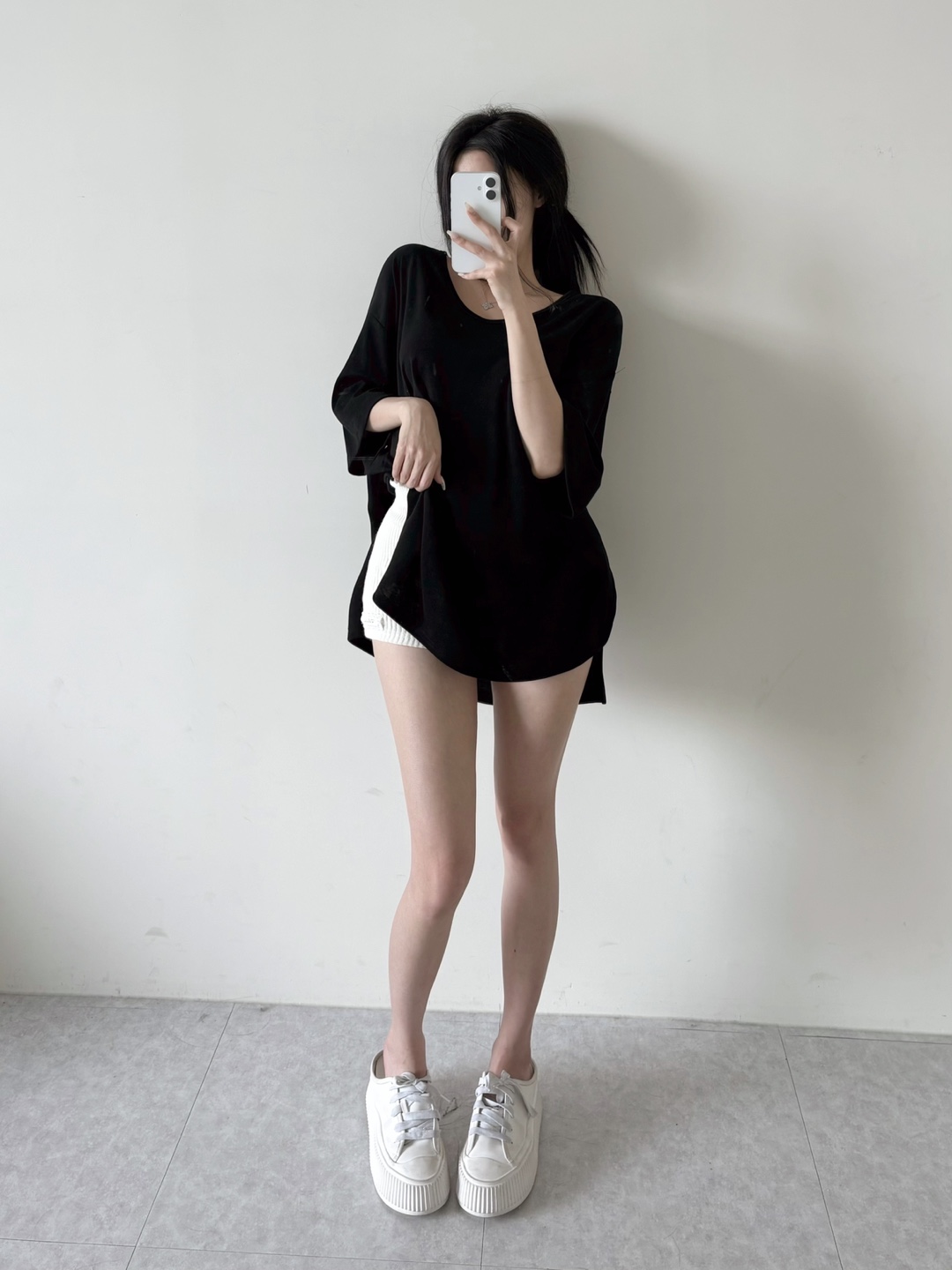 힙을 덮는 언발란스 기장감으로