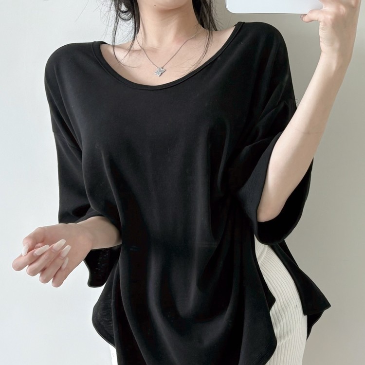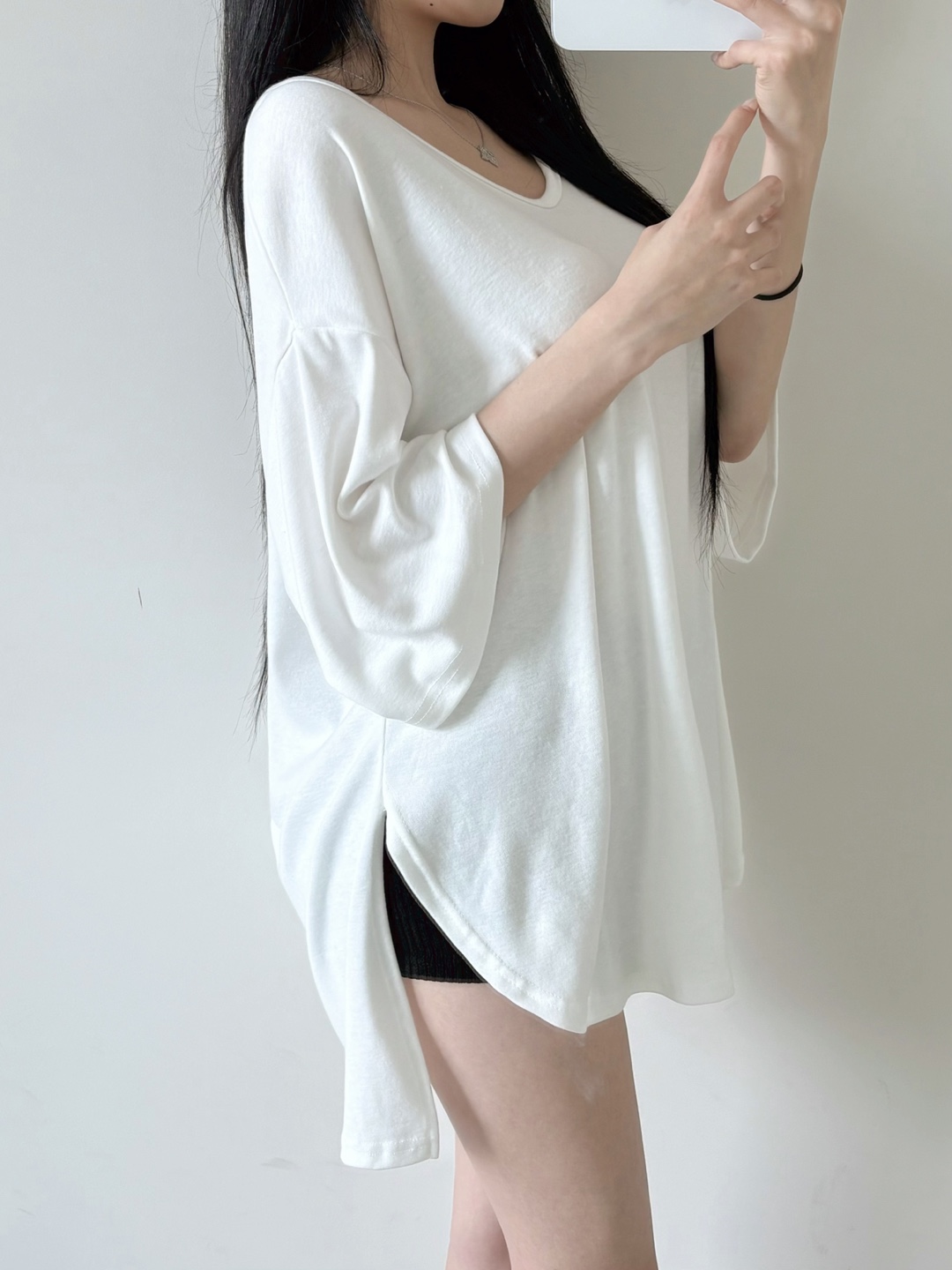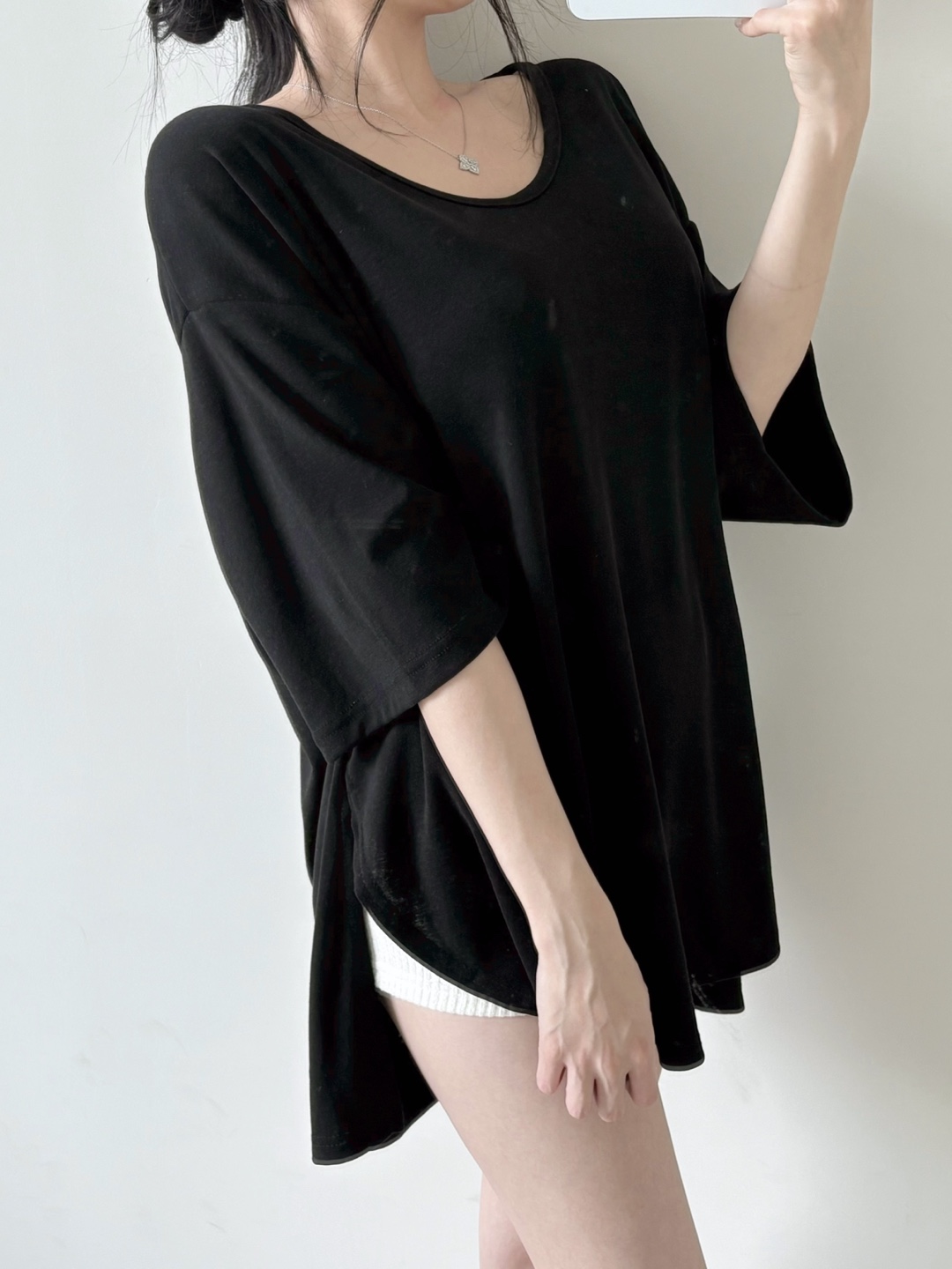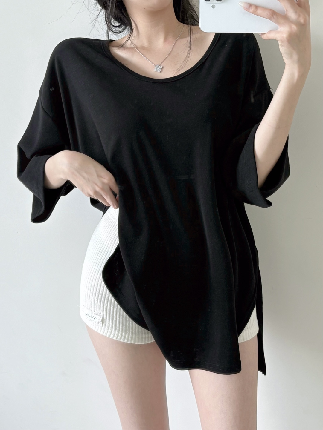 힙을 덮는 언발란스 기장감으로