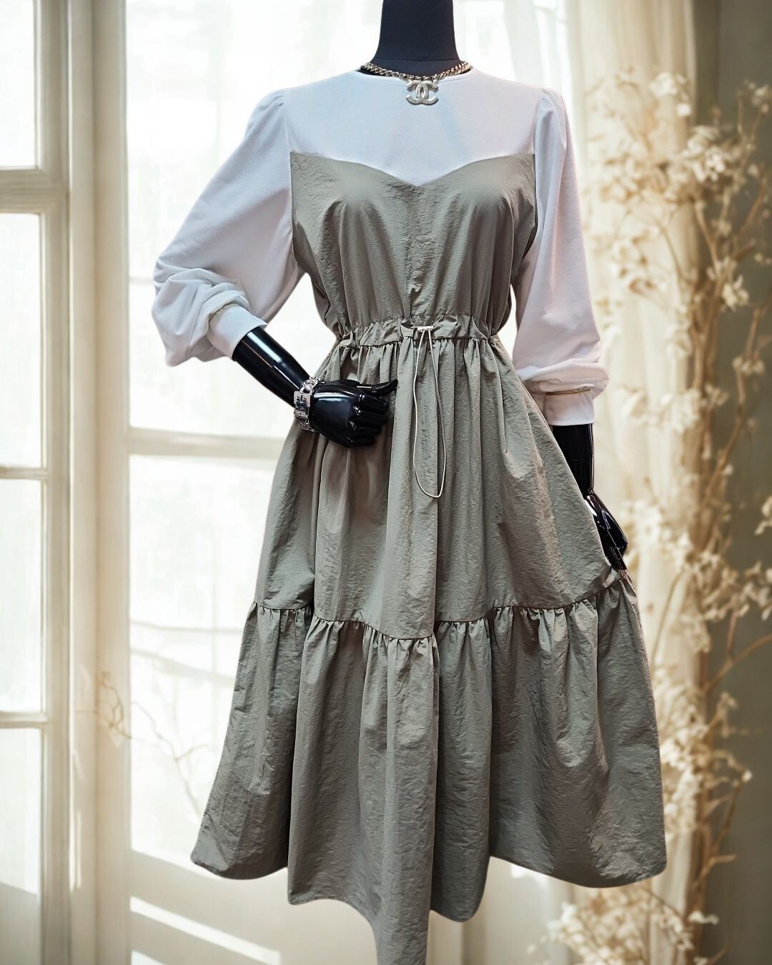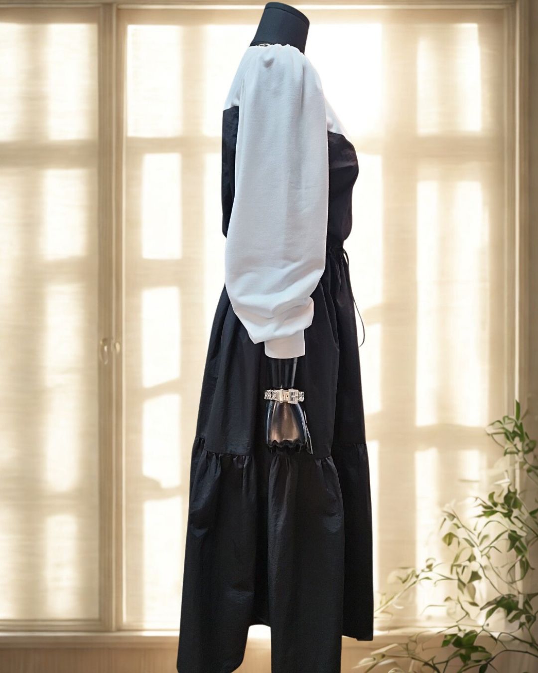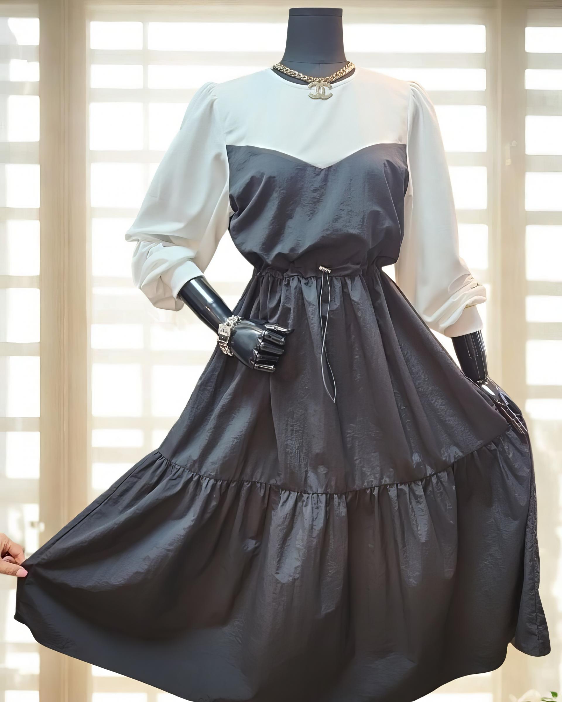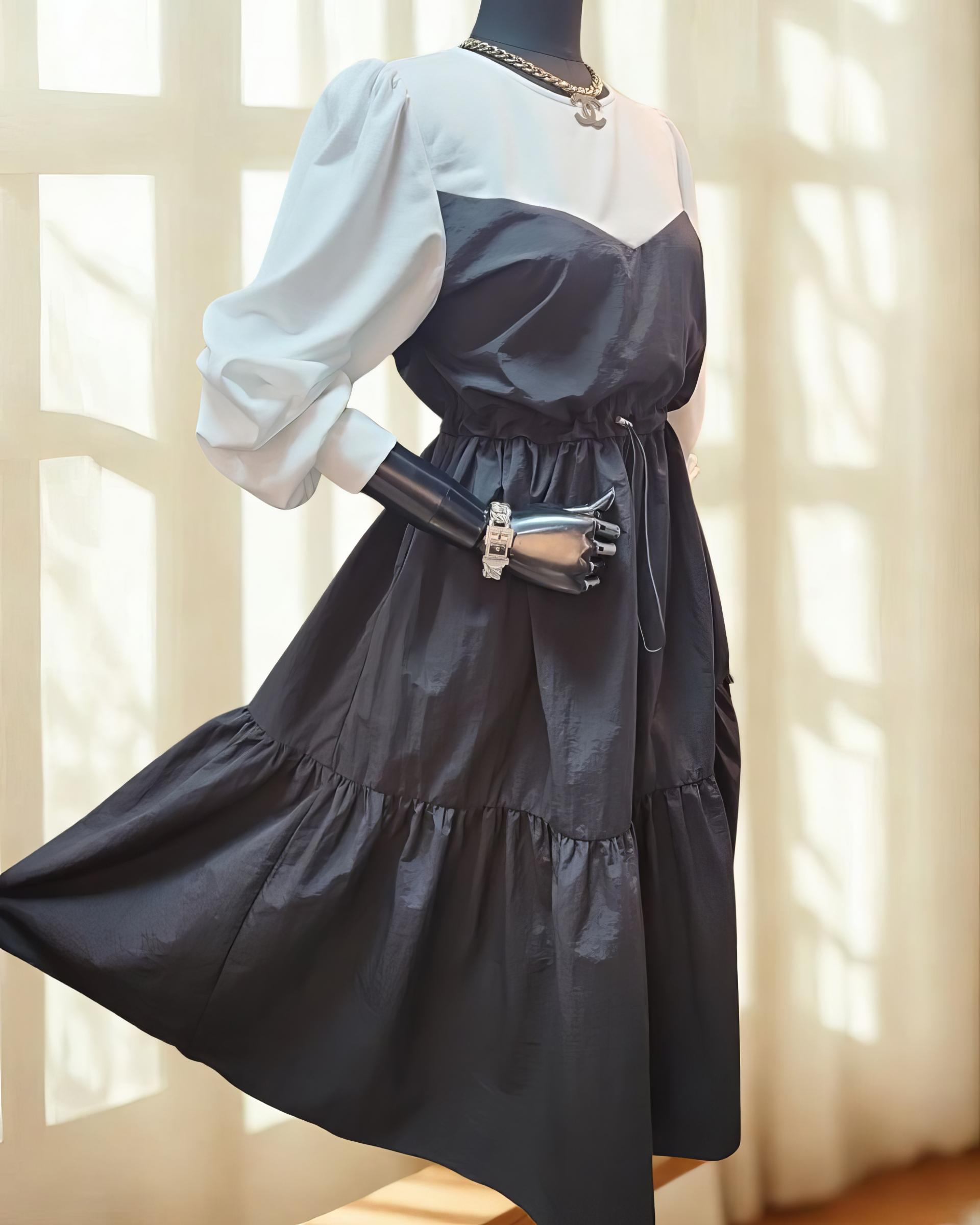 퍼프 소매와 플레어 스커트로