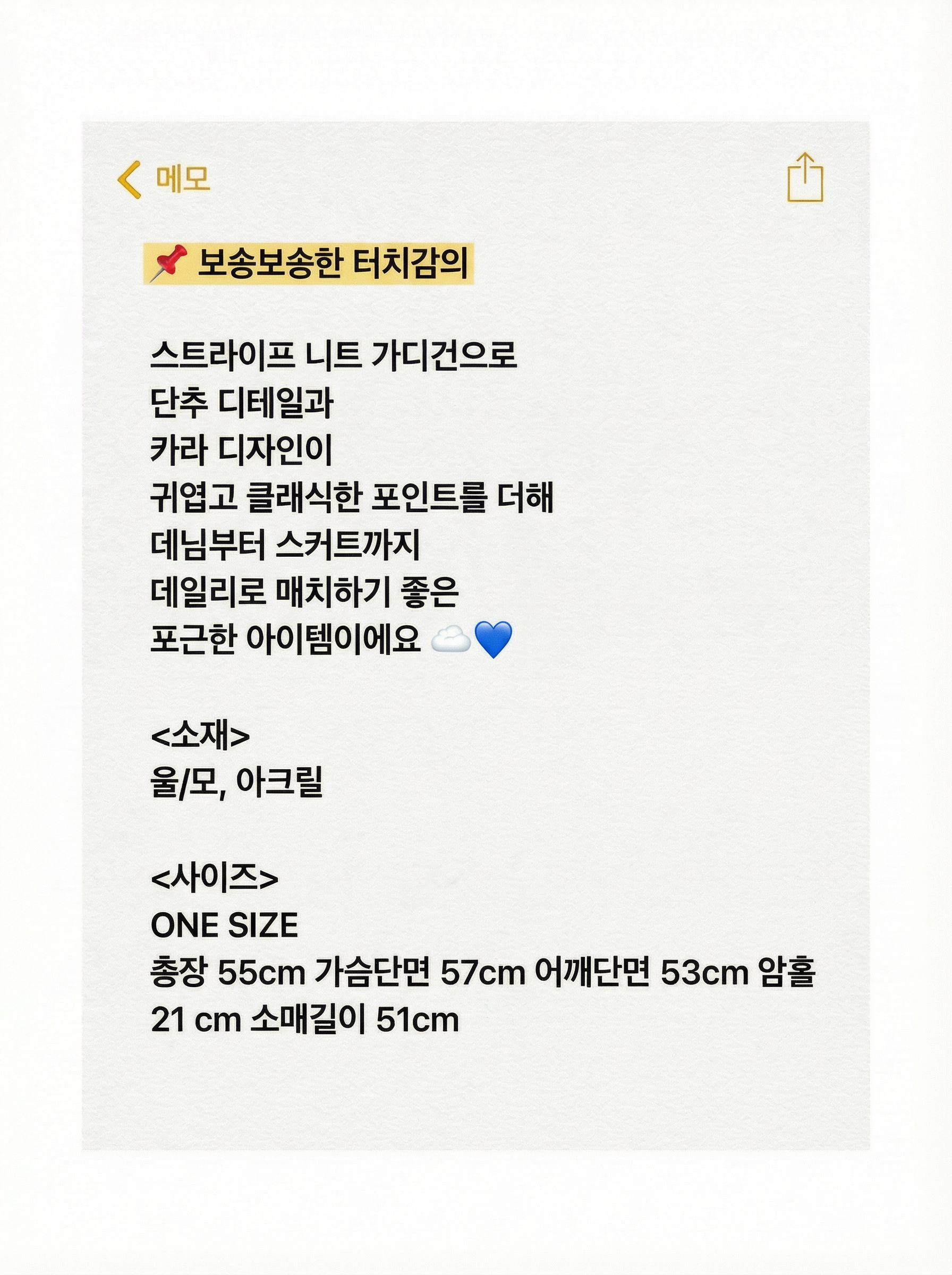 • 단추 디테일과 카라 디자인으로 귀엽고 클래식한 포인트 💙✨
