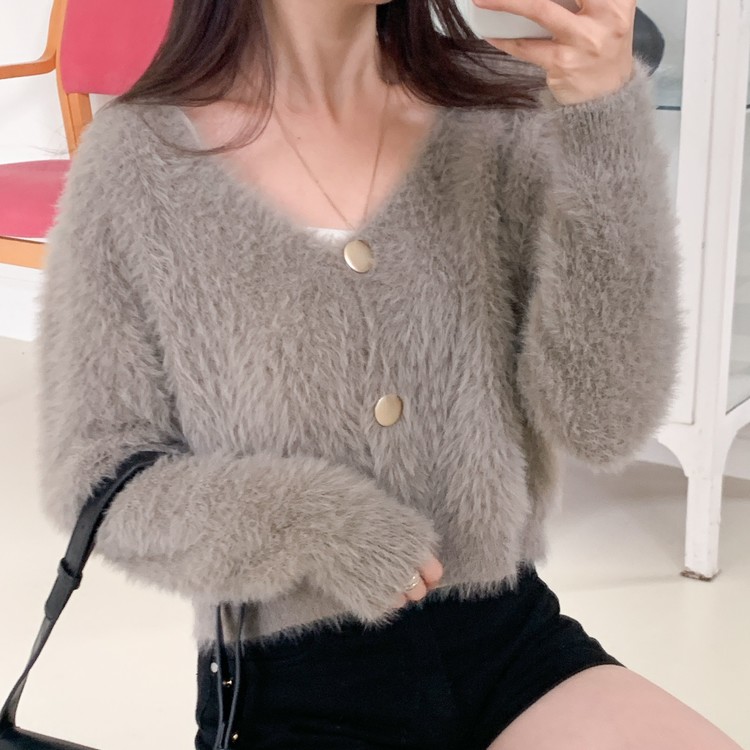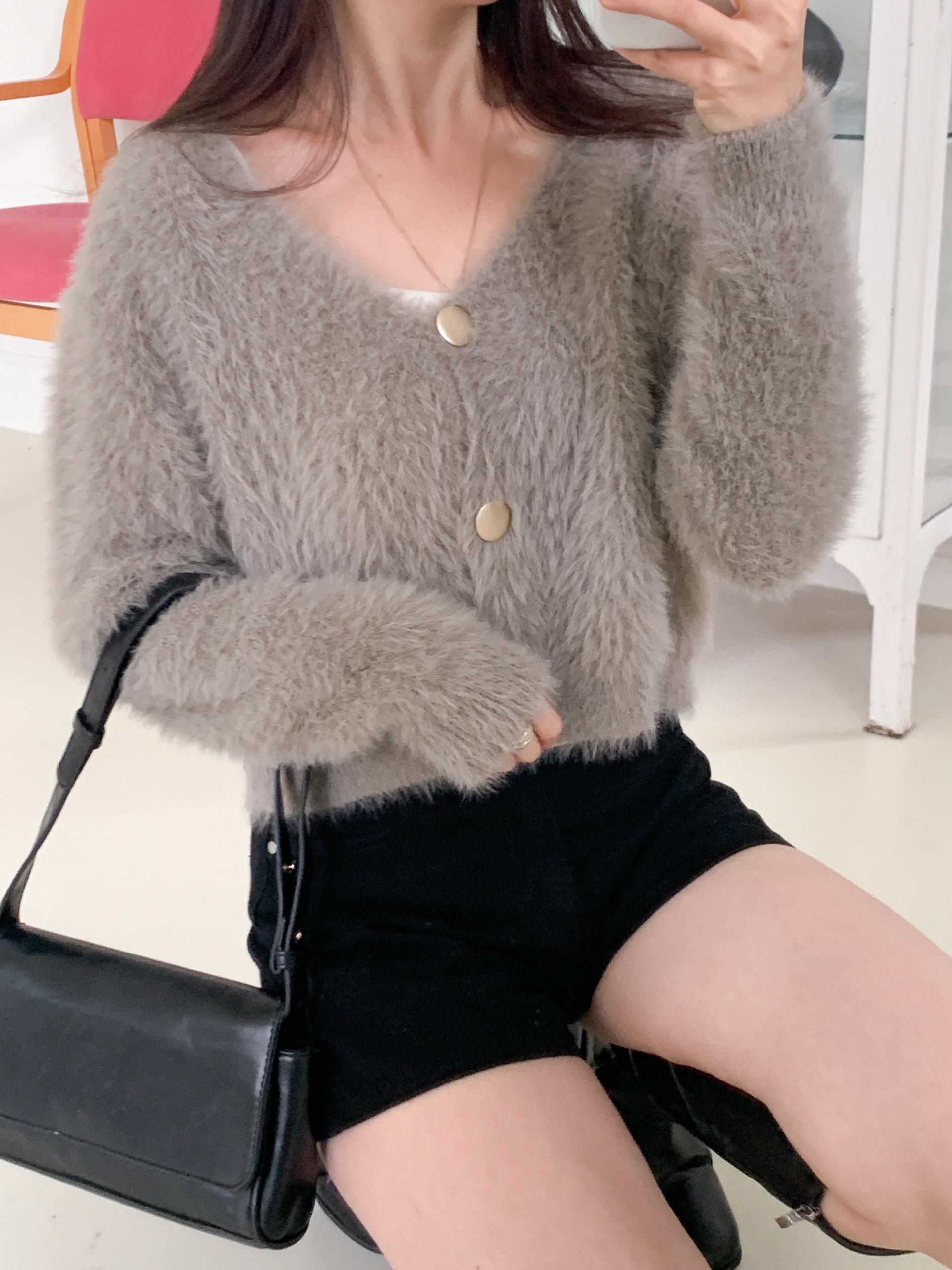 브이넥과 버튼 디테일로