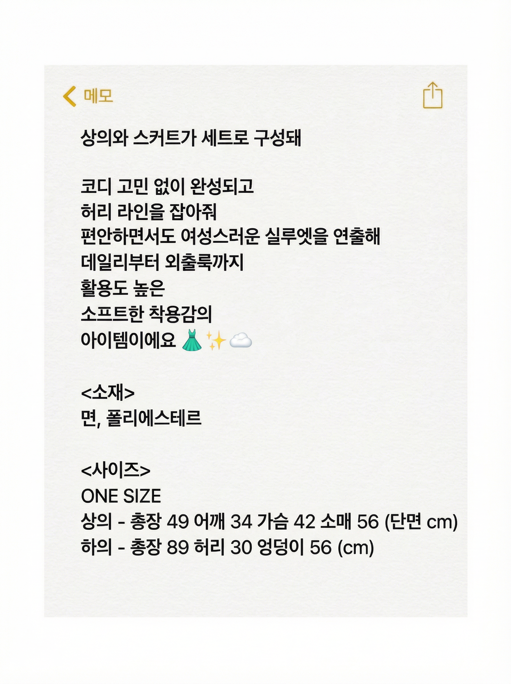 모니터 사양 및 모바일 화면 밝기에 따라 차이가 있을 수 있으며 모델착용컷은 빛, 조명 등에 의해 실제색상과 다를 수 있으며 상품 상세사진이 실제 컬러와 가장 가깝습니다.