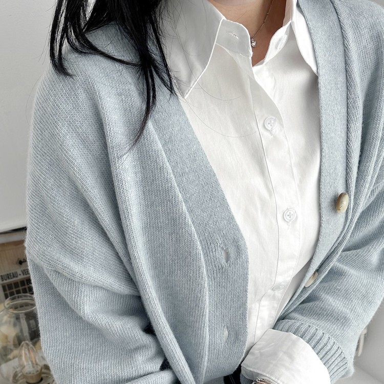 리얼 알파카 제질로 만들어진 베이비블루 색 가디건이에요 💗
