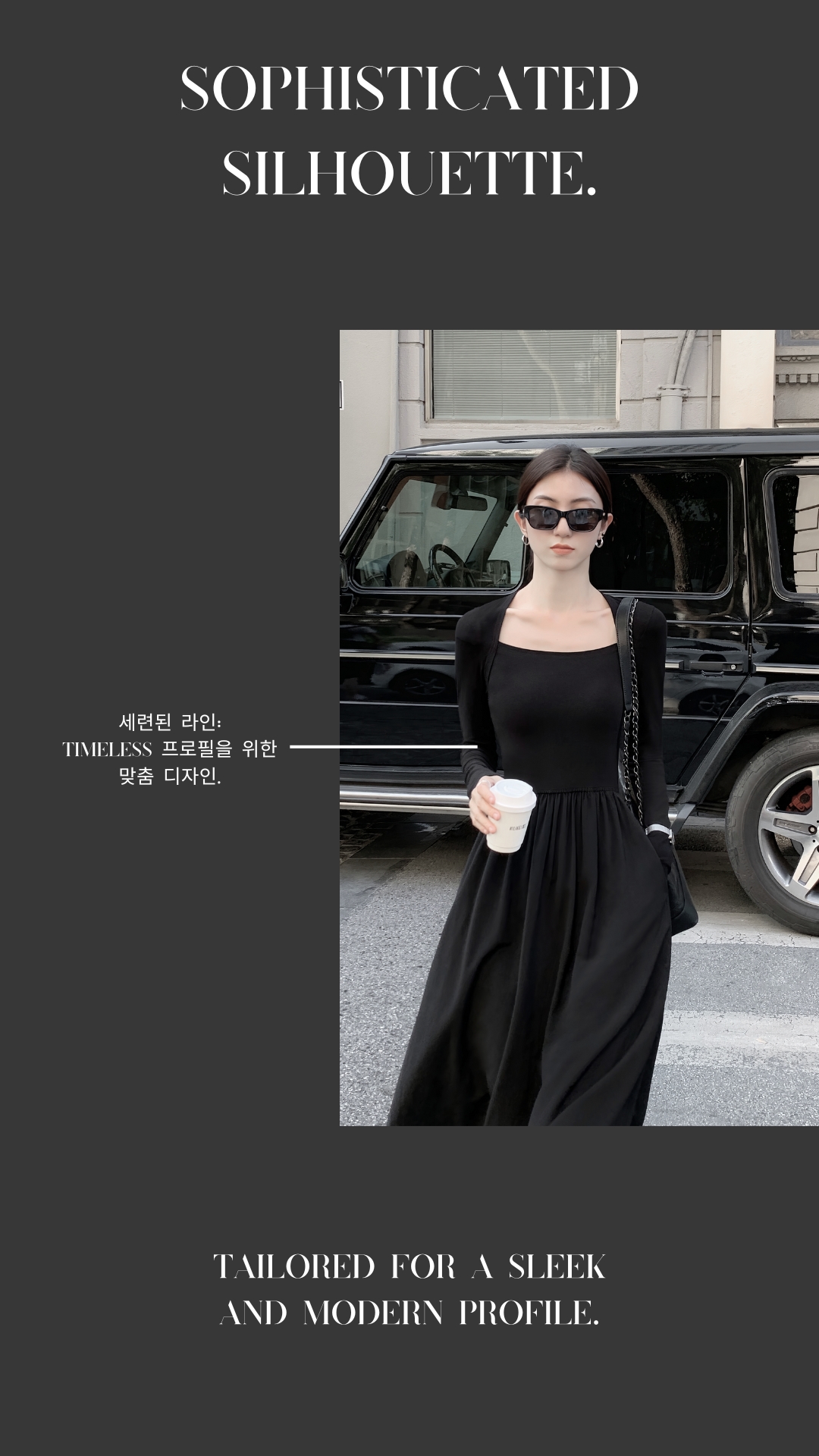 • 고급스러운 블랙 드레스: 깔끔하고 세련된 블랙 색상의 롱 드레스가 우아함을 강조해줘요!