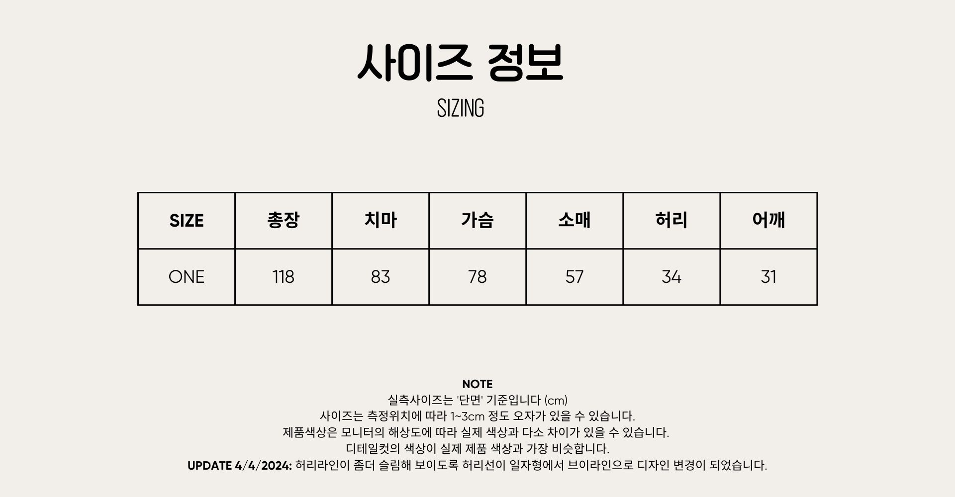 모니터 사양 및 모바일 화면 밝기에 따라 차이가 있을 수 있으며 모델착용컷은 빛, 조명 등에 의해 실제색상과 다를 수 있으며 상품 상세사진이 실제 컬러와 가장 가깝습니다.