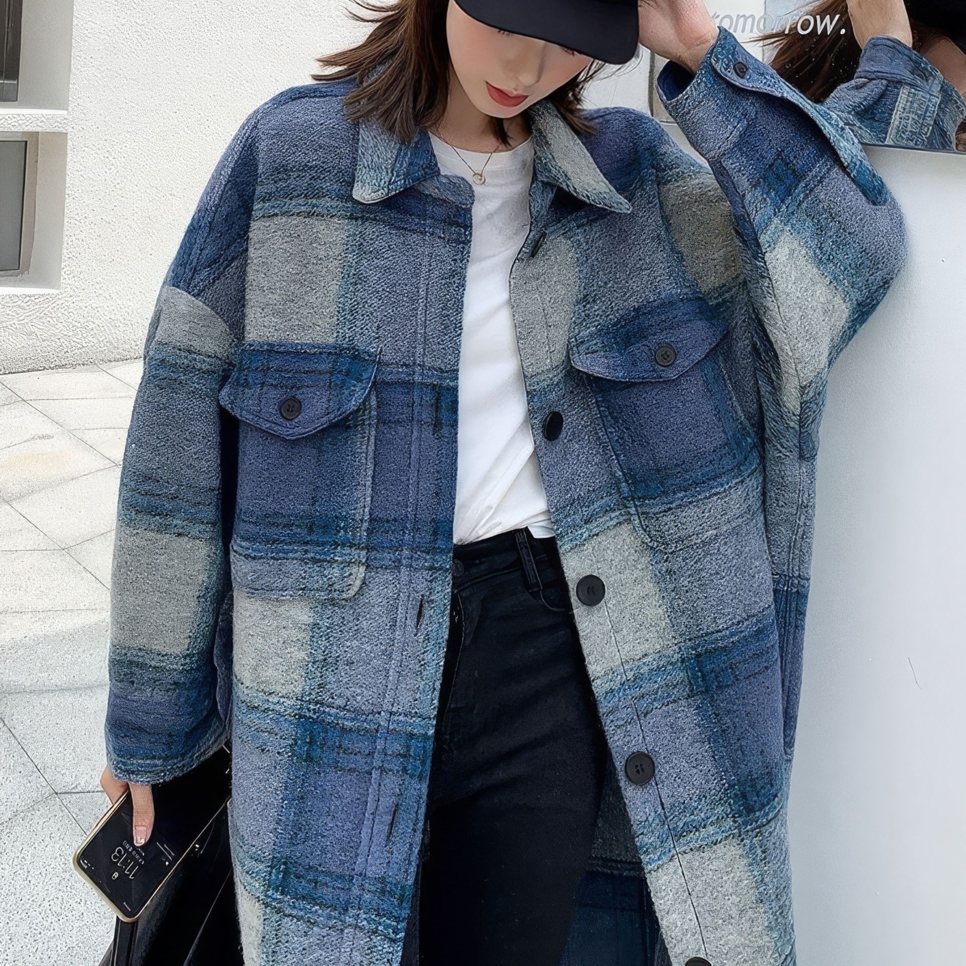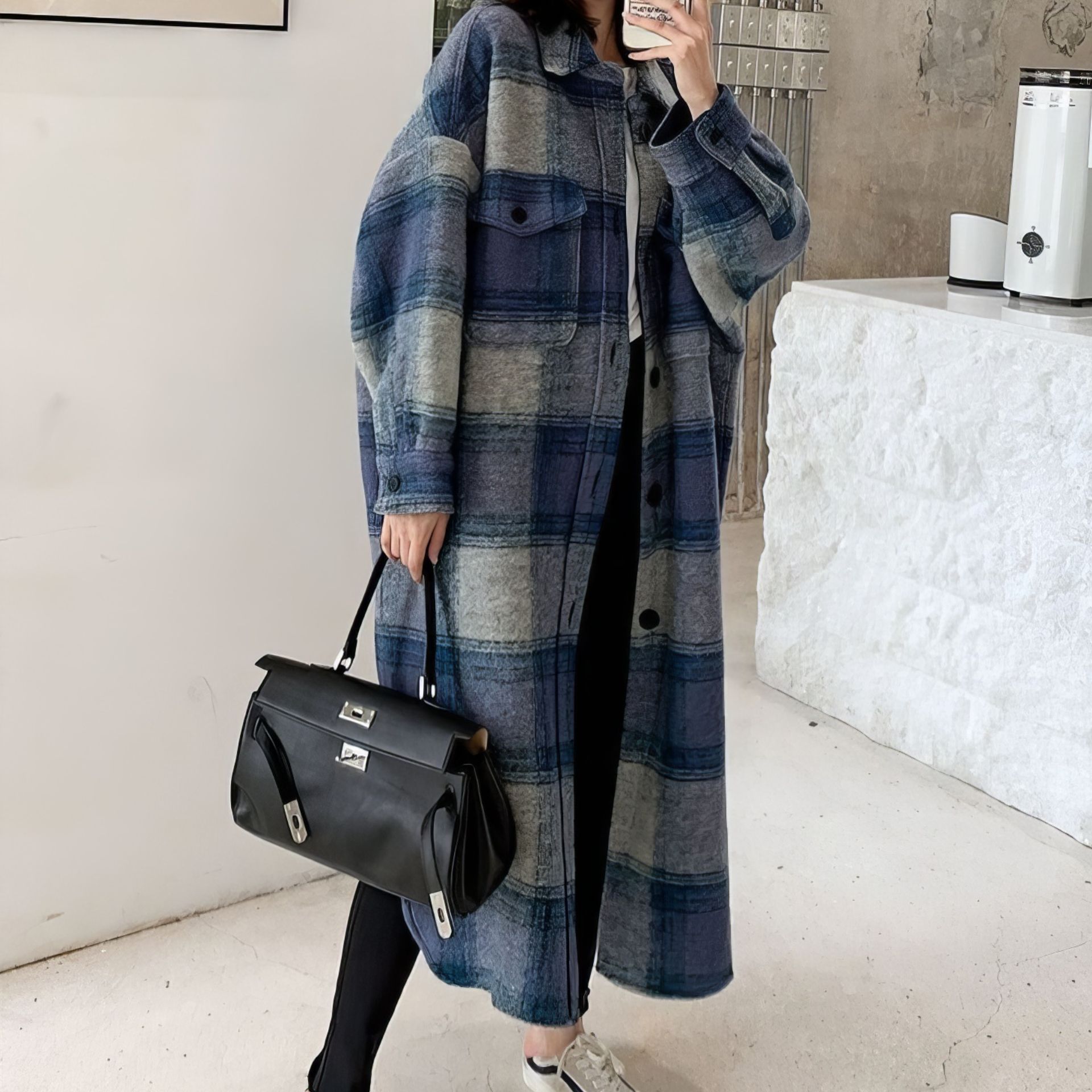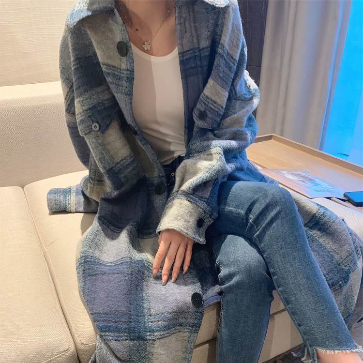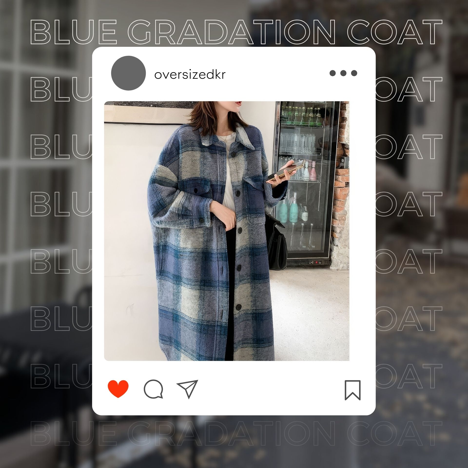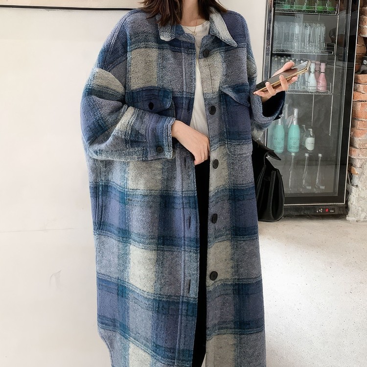 Blue Gradation Coat - 블루 그라데이션 롱 체크 코트