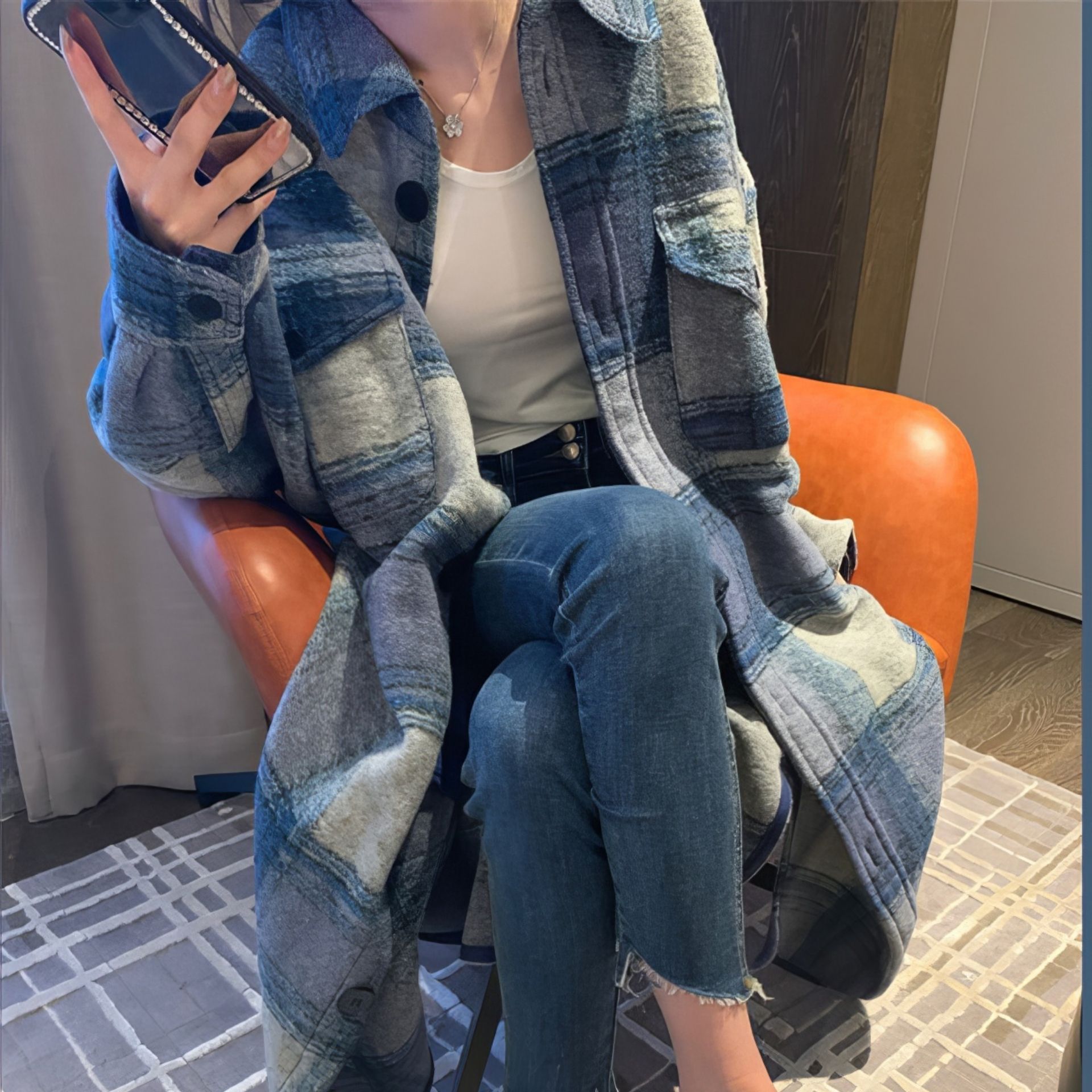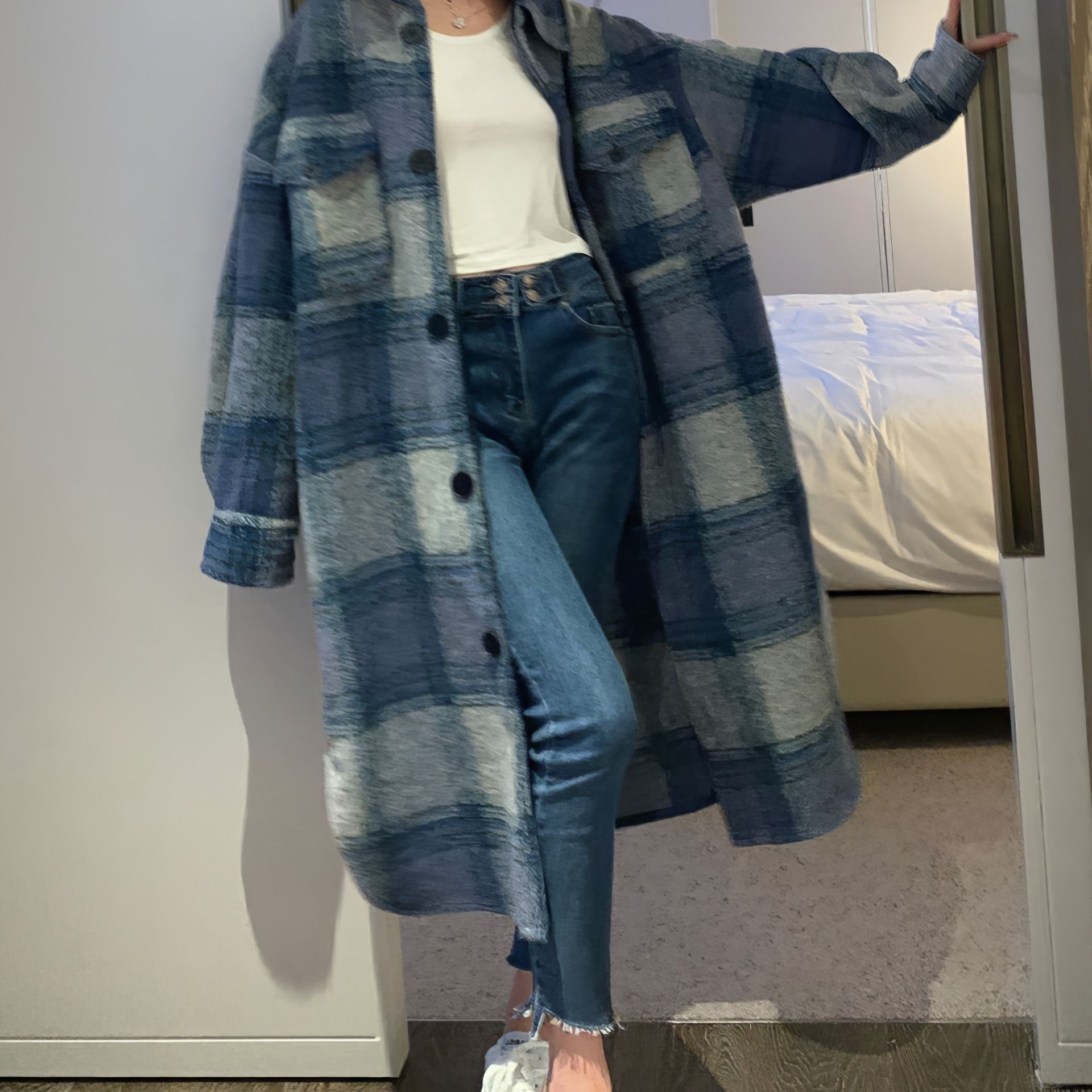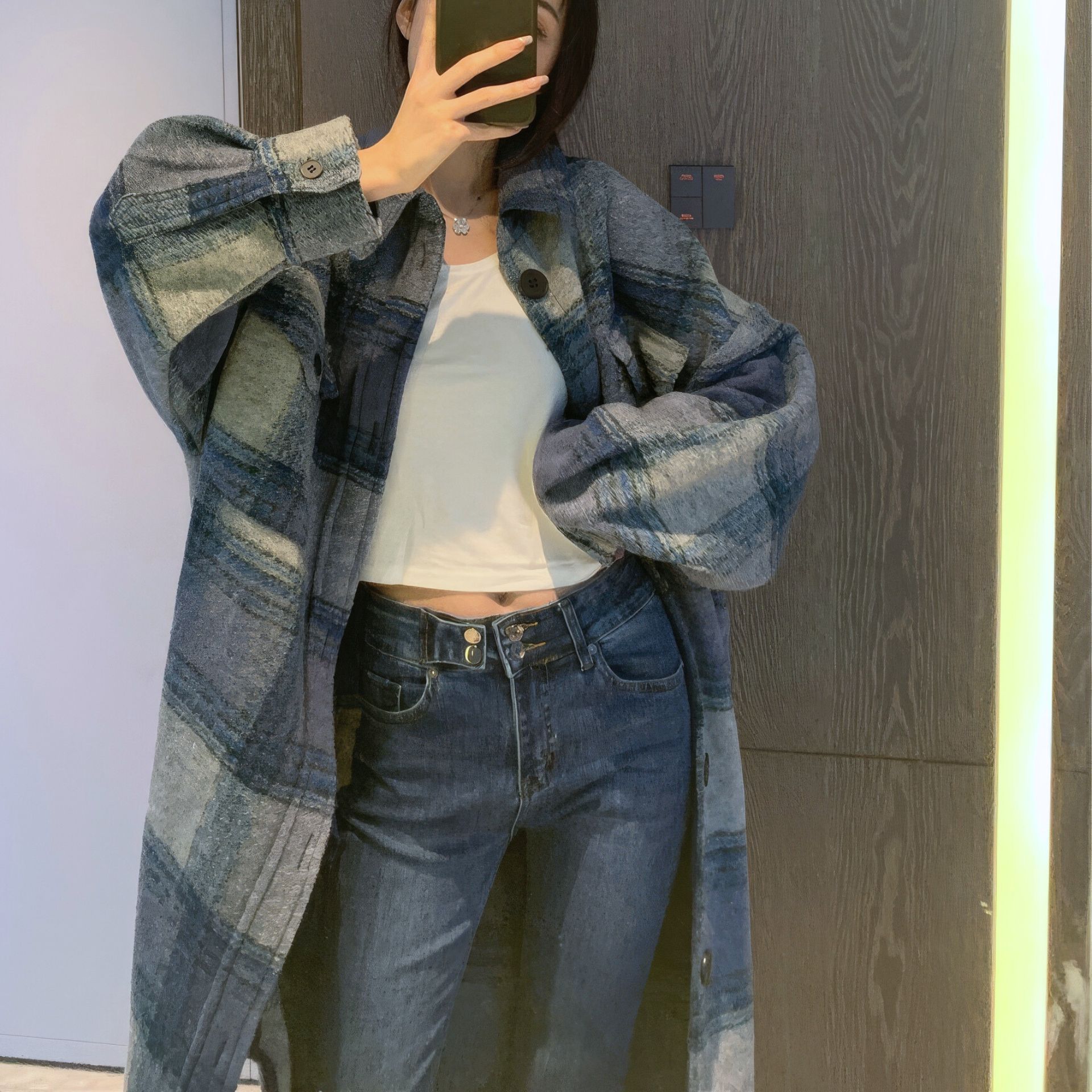 Blue Gradation Coat - 블루 그라데이션 롱 체크 코트