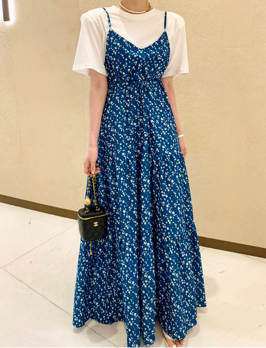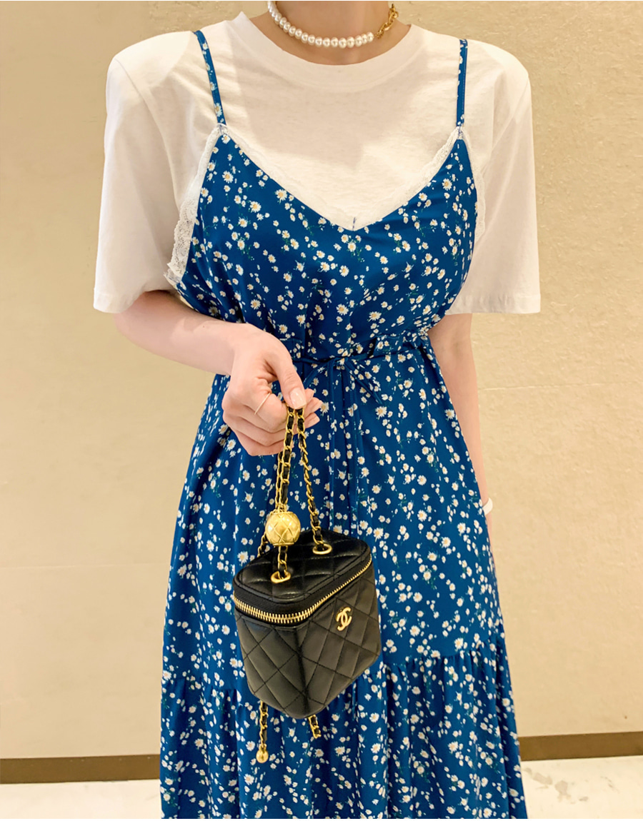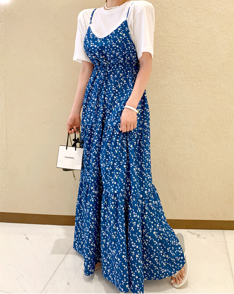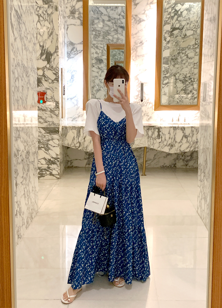 가슴45。허리44。힙58。암홀27.5。밑단135。총기장135(어깨끈길이조절가능)