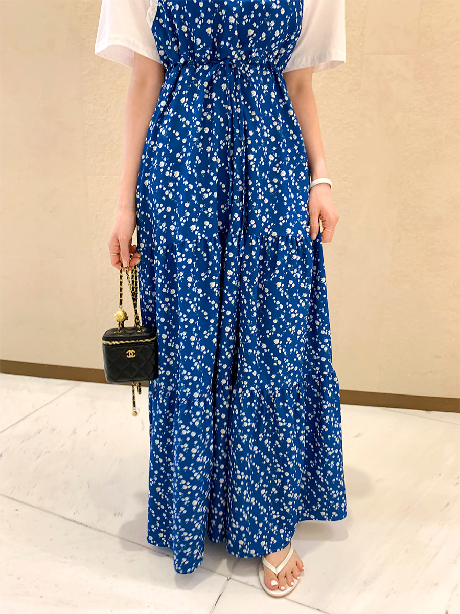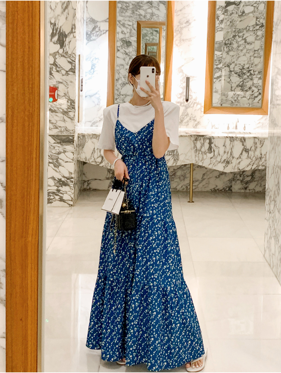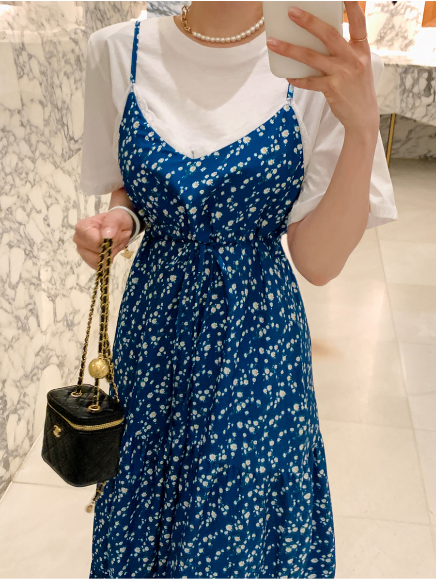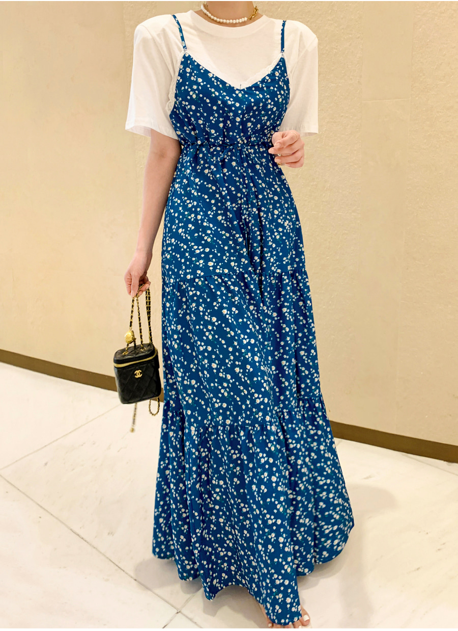 가슴45。허리44。힙58。암홀27.5。밑단135。총기장135(어깨끈길이조절가능)