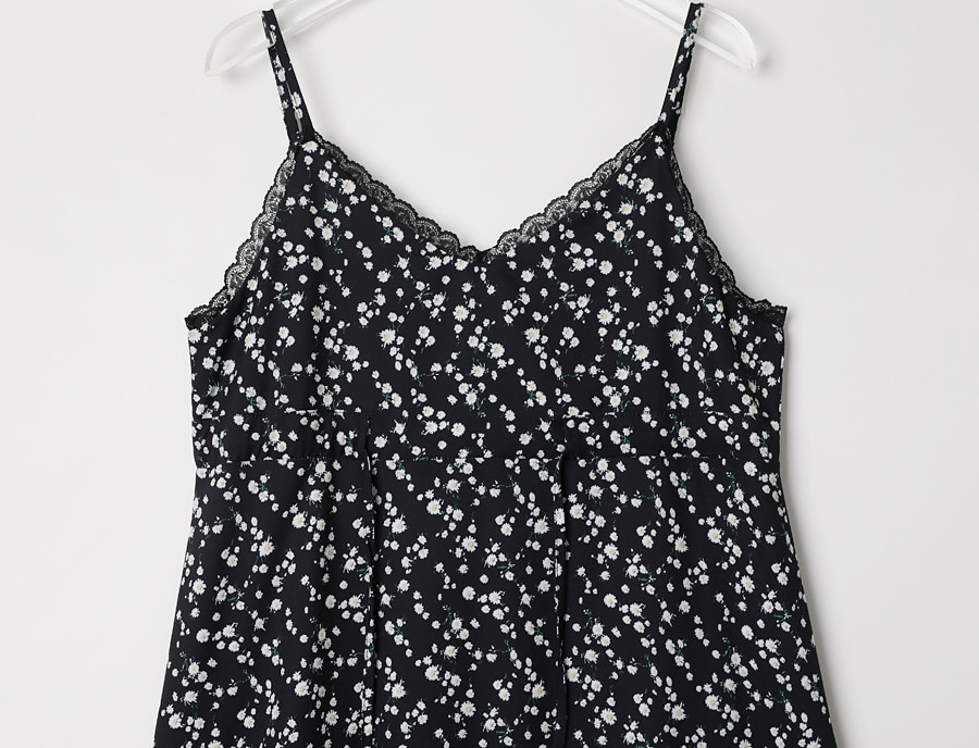 넥라인은 레이스 트리밍으로 여성미를 강조하고,