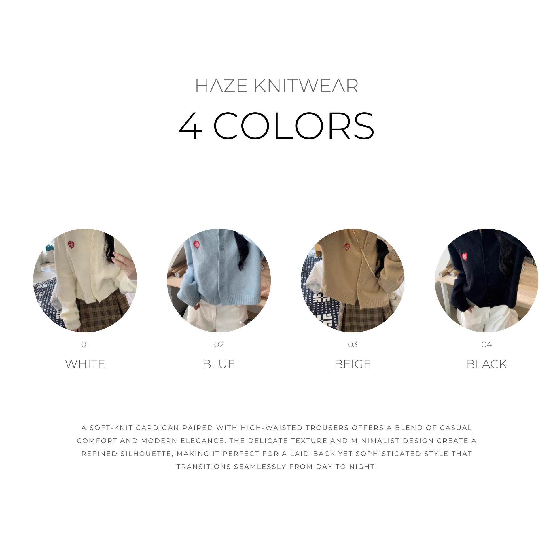 부드러운 소재감: 고급스러운 니트 소재로 피부에 닿는 느낌이 부드럽고 편안하여, 일상 생활에서 편하게 착용할 수 있어요 ✨