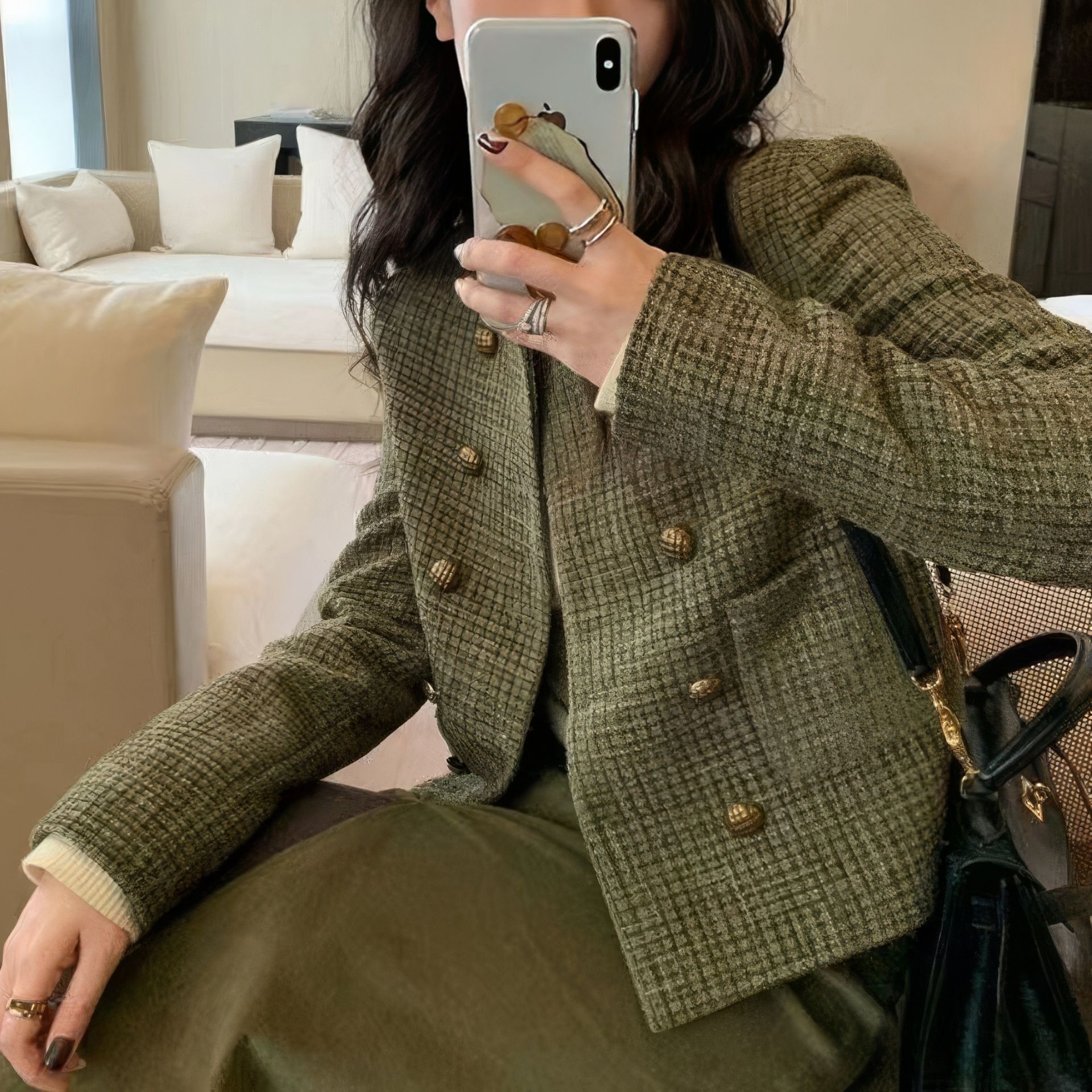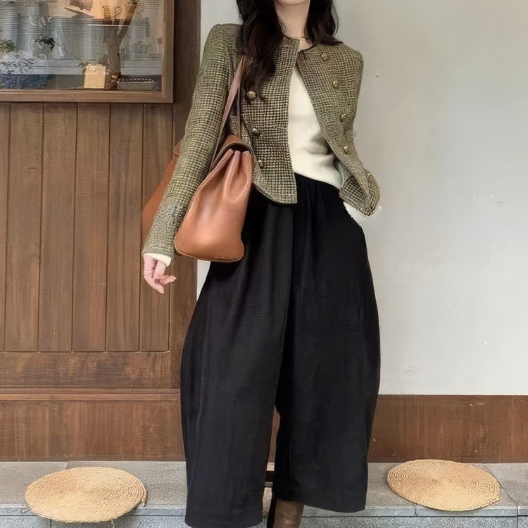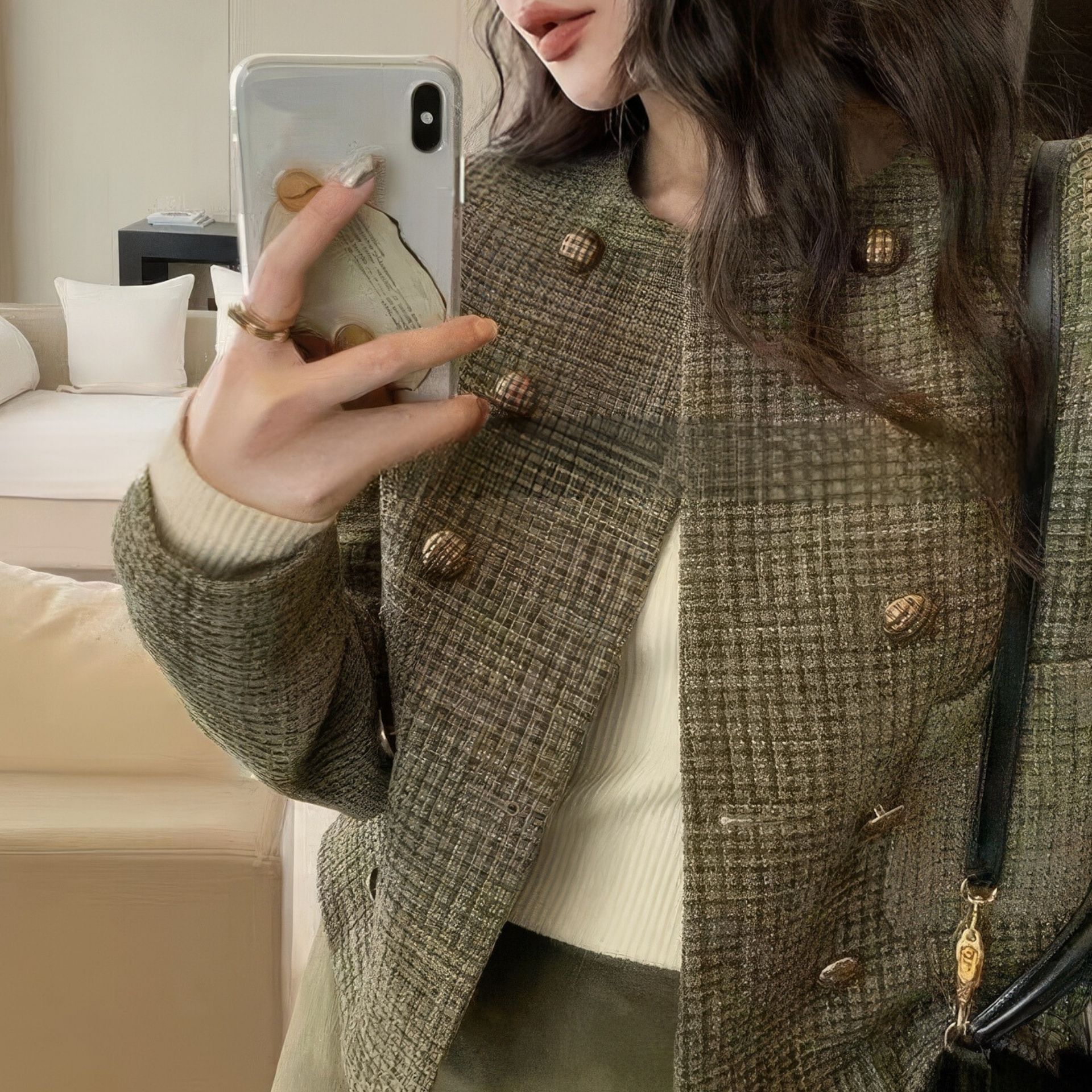 • 세련된 골드 버튼으로 포인트를 준 트위드 자켓 ✨