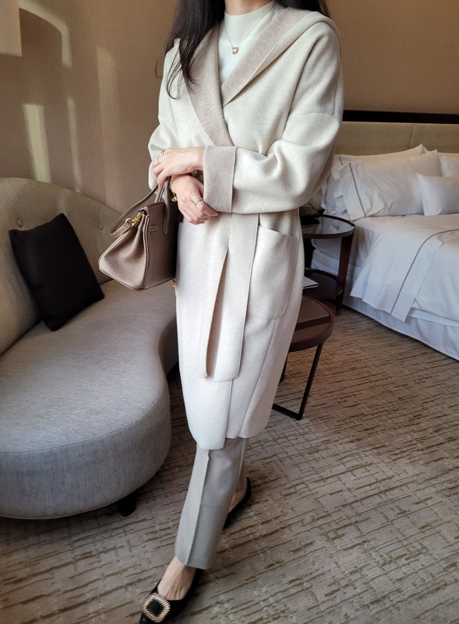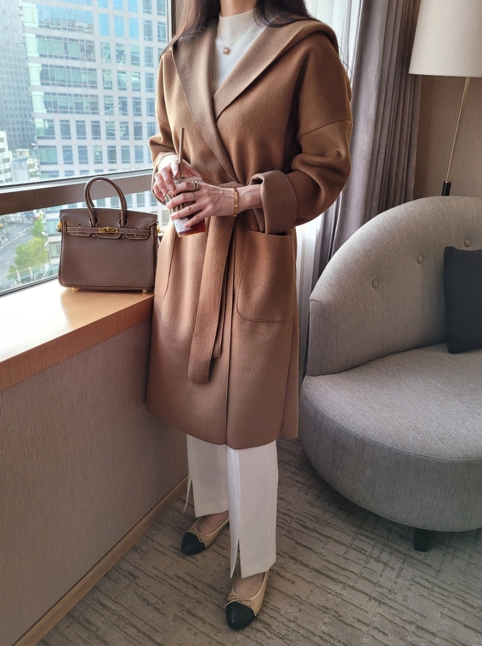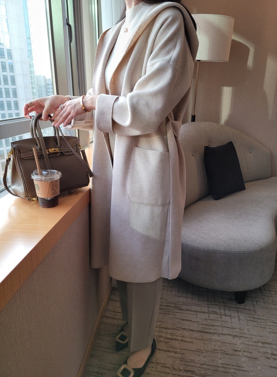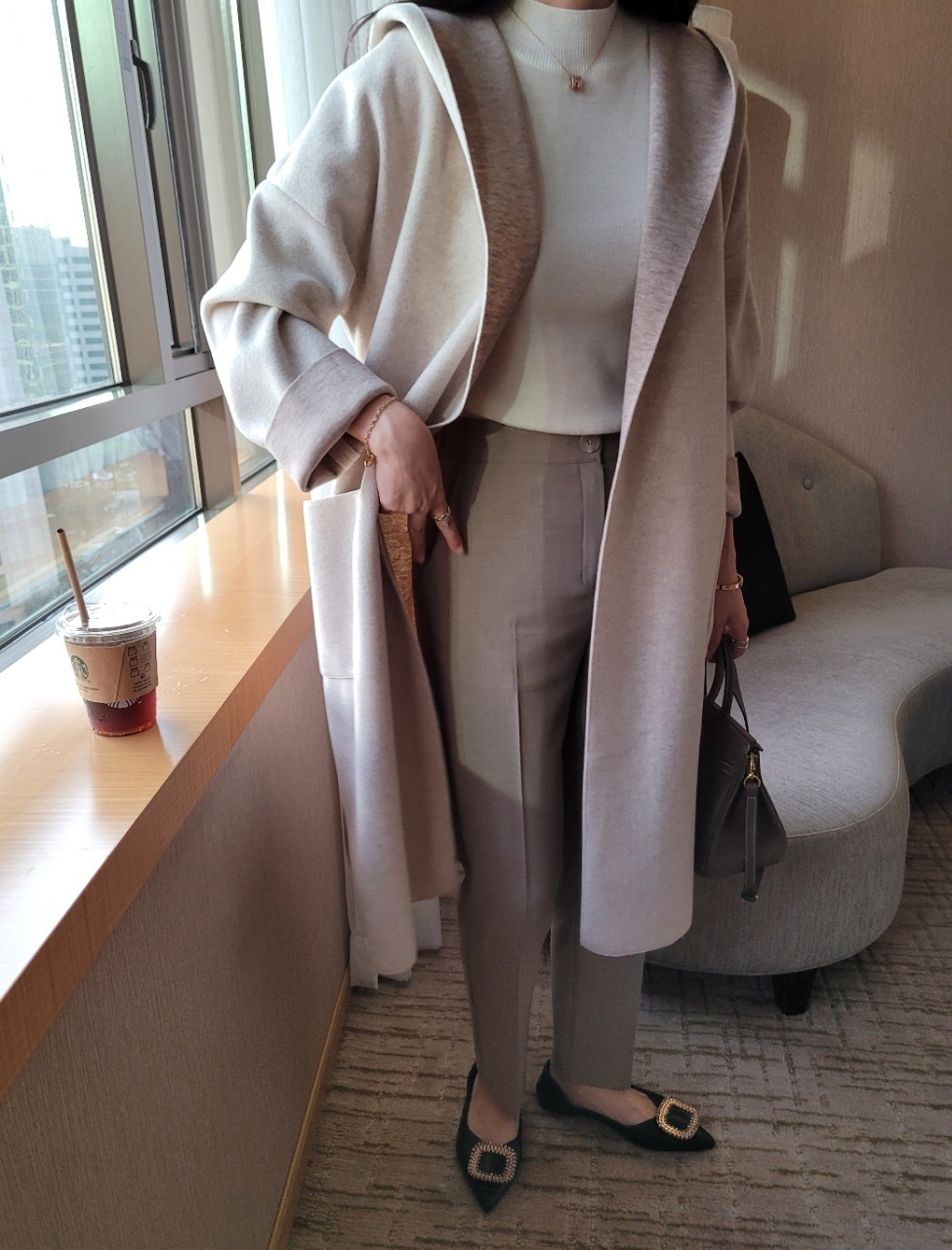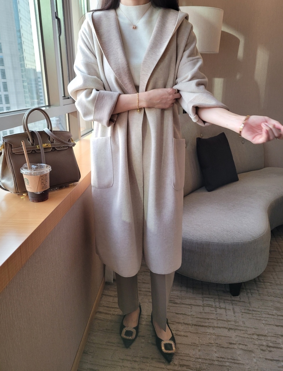 원단감이 정말 뛰어난 후드 가디건 코트입니다! 😊