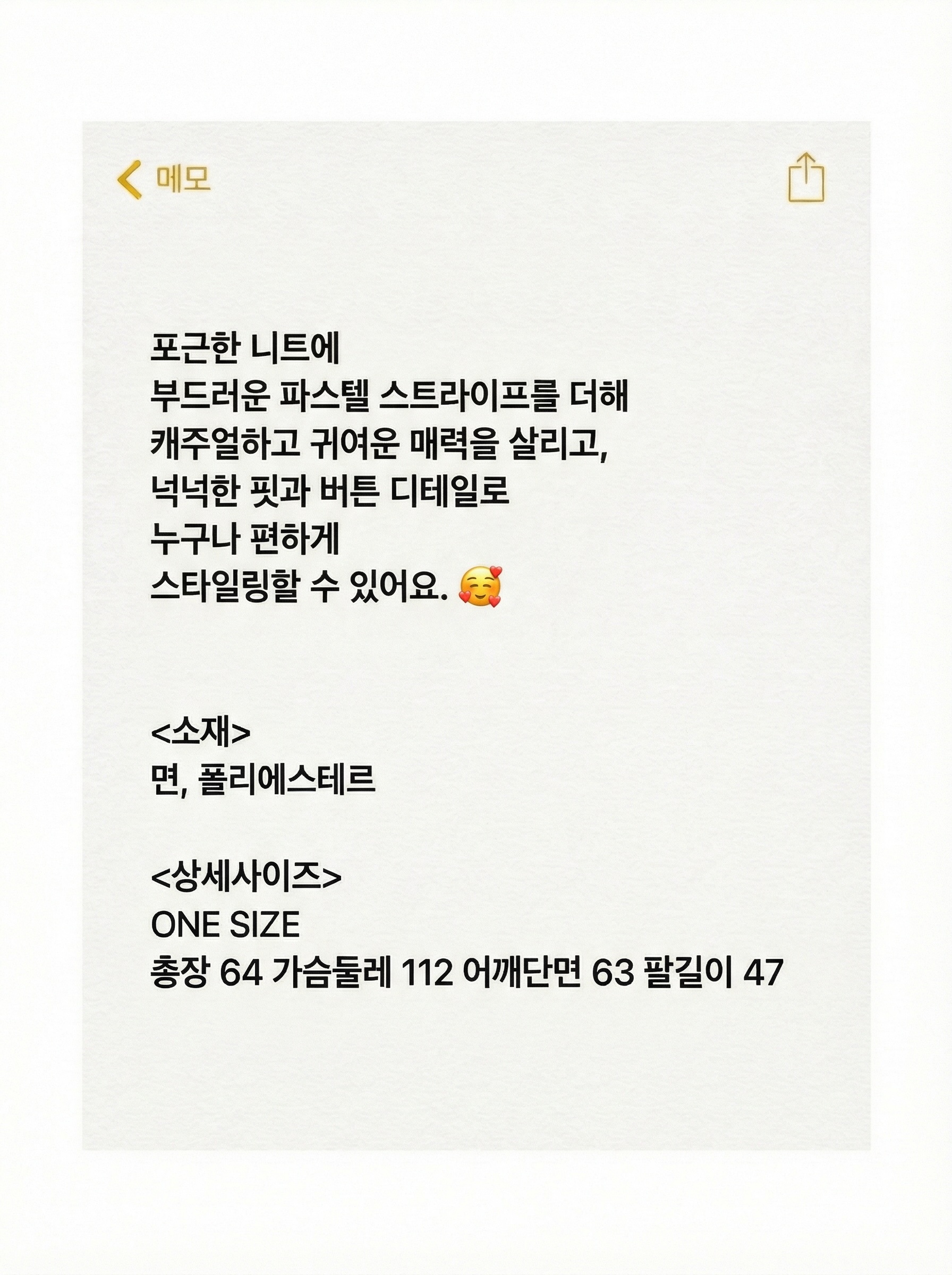 모니터 사양 및 모바일 화면 밝기에 따라 차이가 있을 수 있으며 모델착용컷은 빛, 조명 등에 의해 실제색상과 다를 수 있으며 상품 상세사진이 실제 컬러와 가장 가깝습니다.