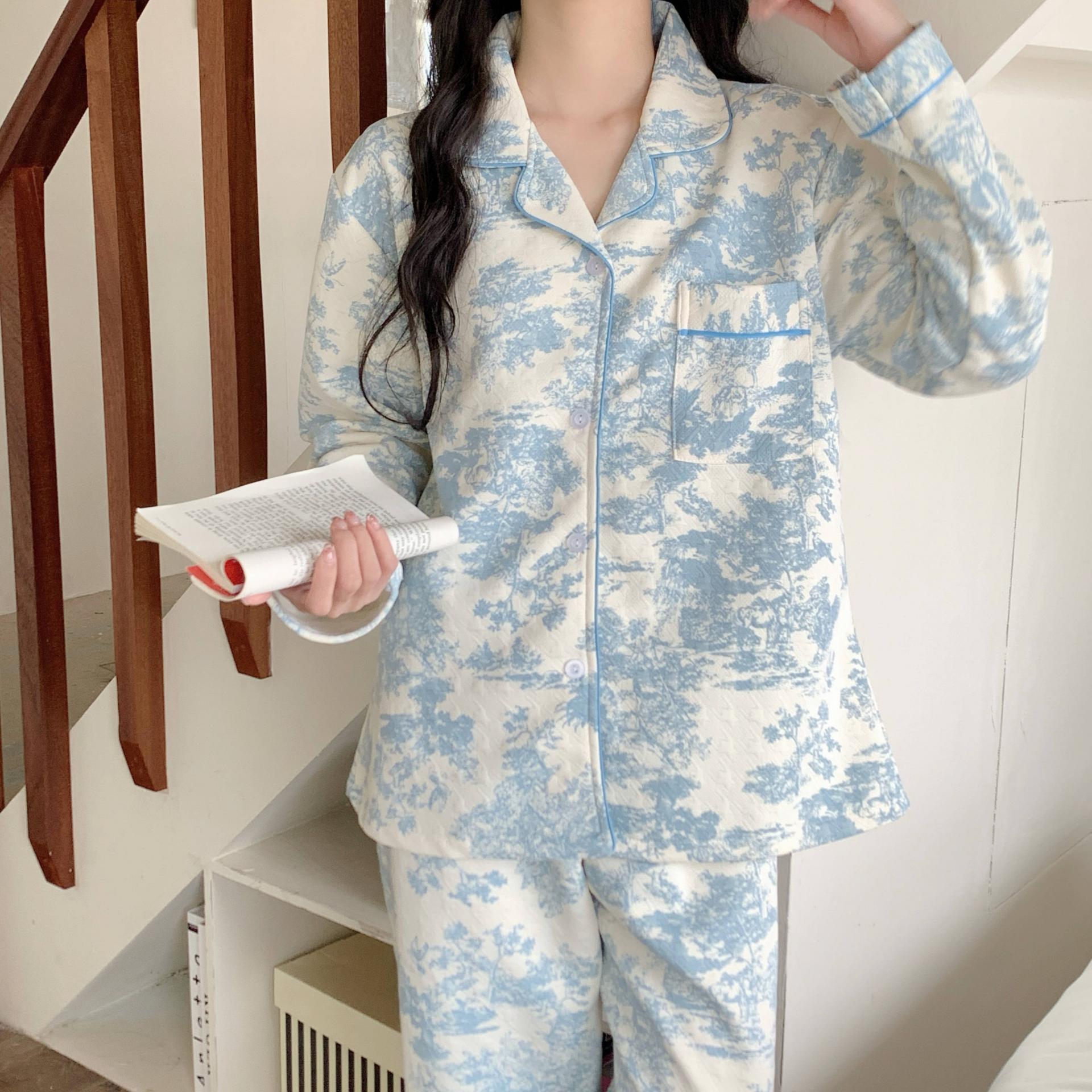 부드럽고 포근한 기모 안감에 사랑스러운 블루 패턴,