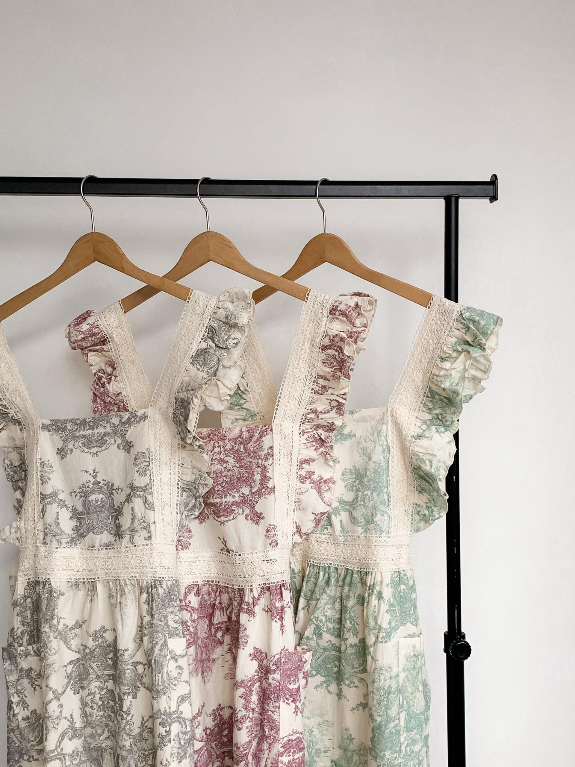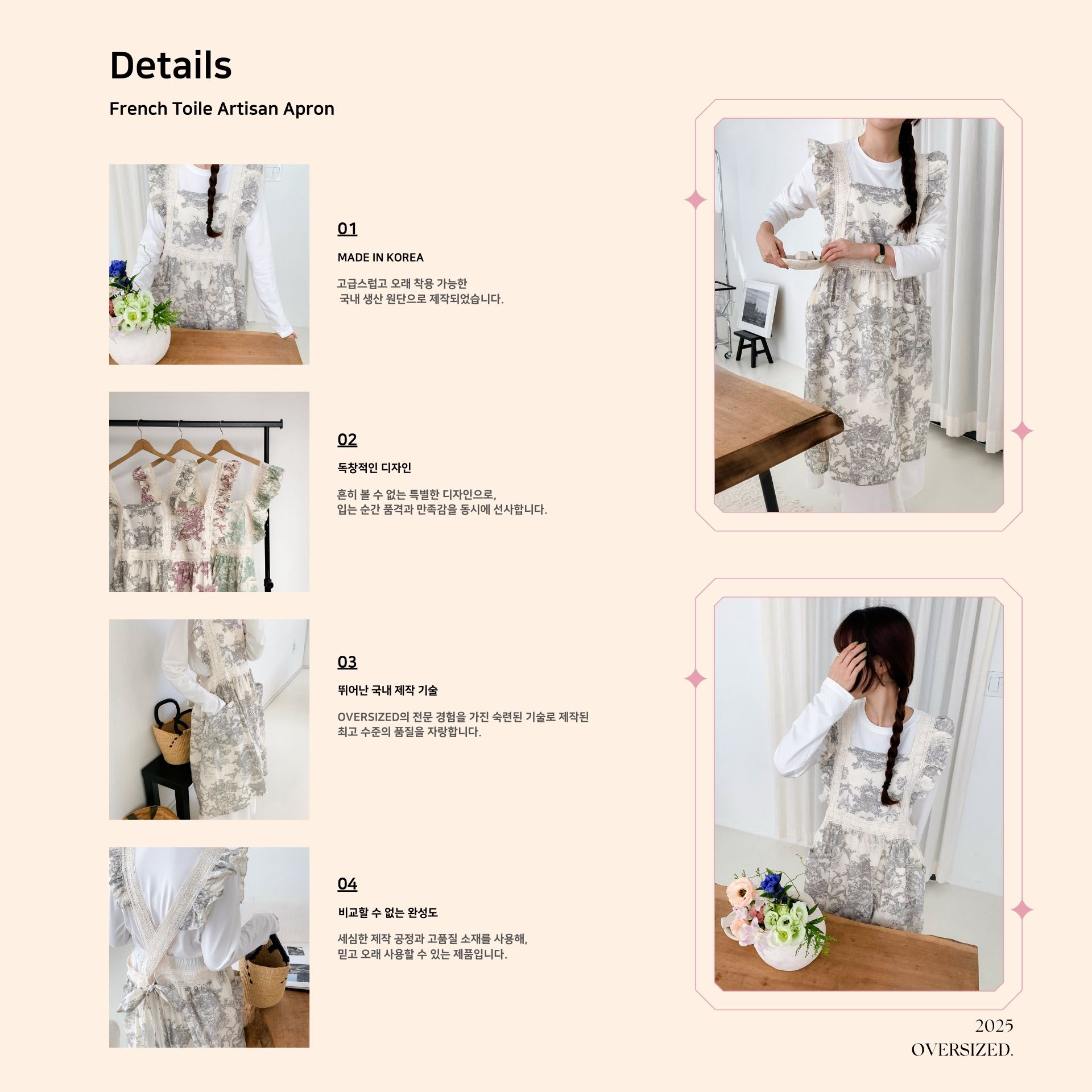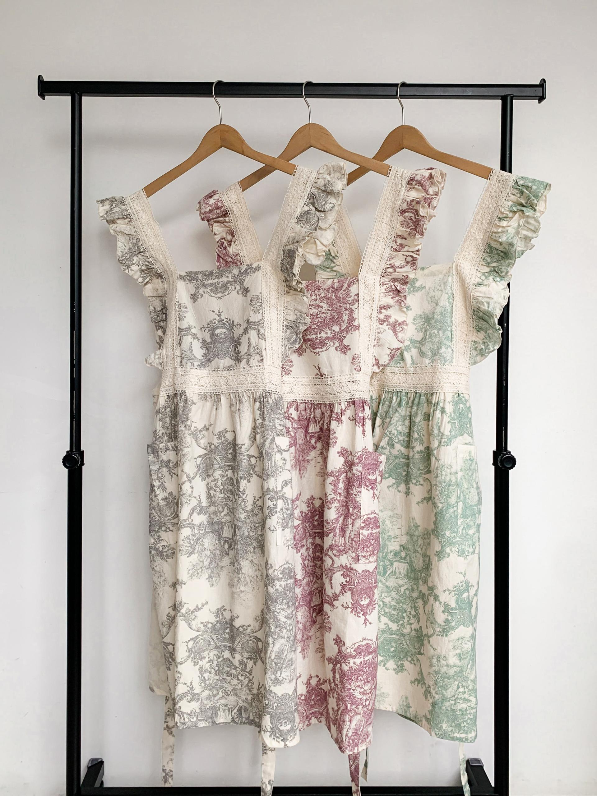 French Toile Artisan Apron - 프렌치 뜨왈 아티잔 앞치마 (그레이 / 핑크 / 민트 / 스카이블루)