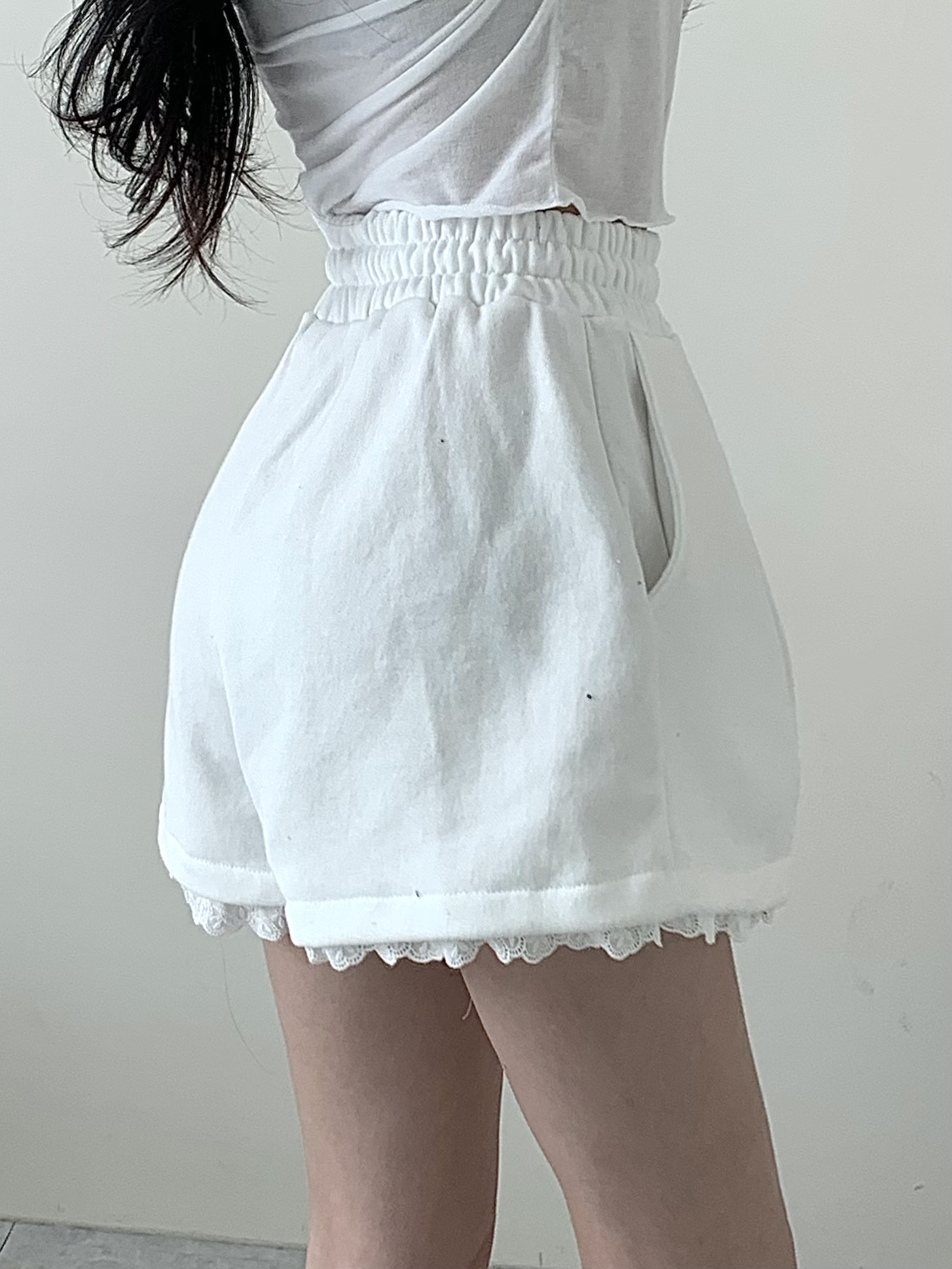부드러운 스웻 소재에 레이스 디테일로 러블리함을 더하고,