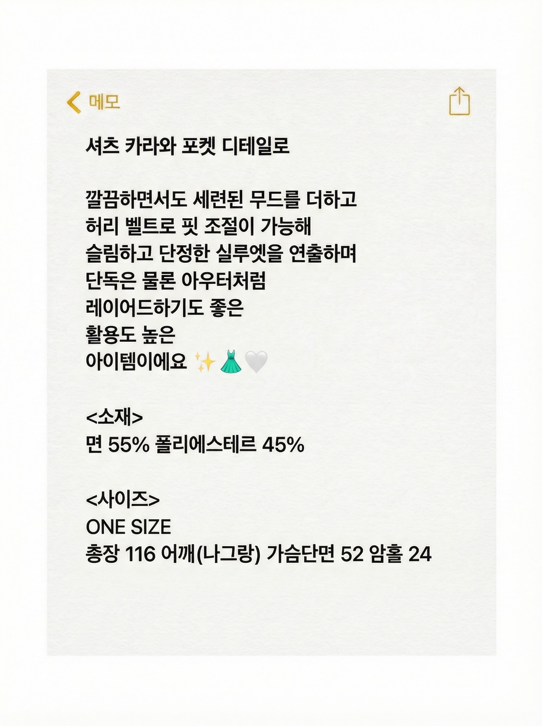 슬림하고 단정한 실루엣이 완성돼요 🤍